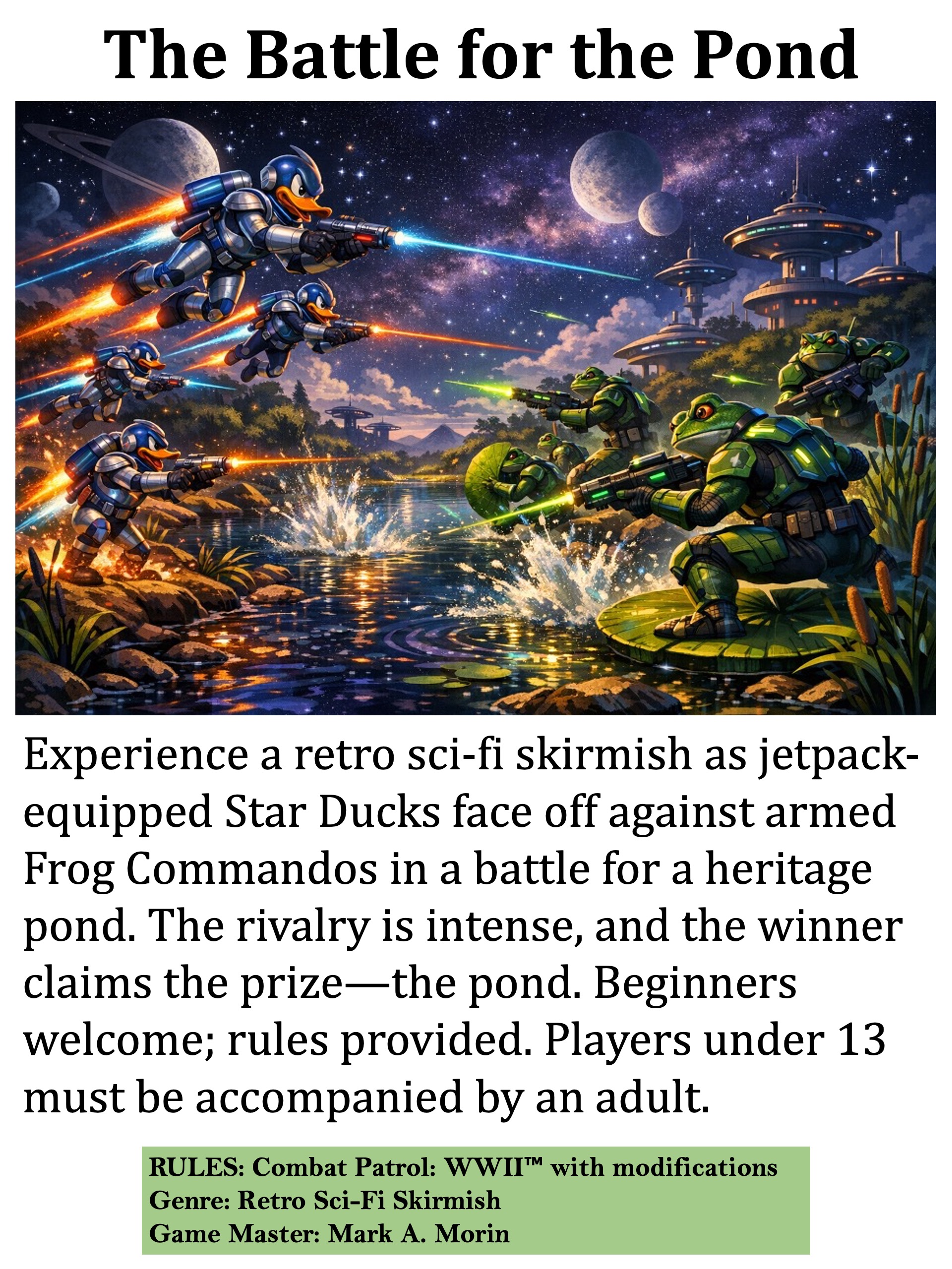 The Munchkins searched in vain for any technological secrets. They did manage to inflict slightly more casualties on Professor Nitpik’s forces, resulting in a narrow 18-15 point victory.