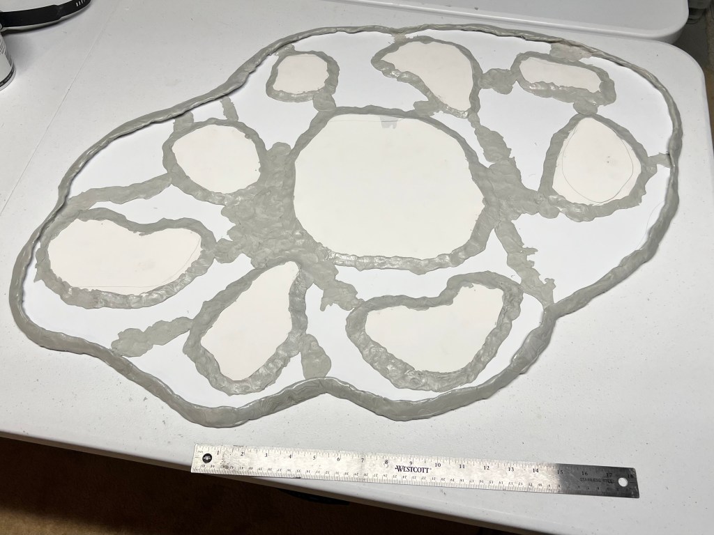 While the walls cured, I worked on the wreckage bases – also using Apoxie Sculpt. I made the bases differently in terms of both size and shape. It helped to use one or more steel washers underneath the base sculpts. Using different sizes helped to make the shapes varied.