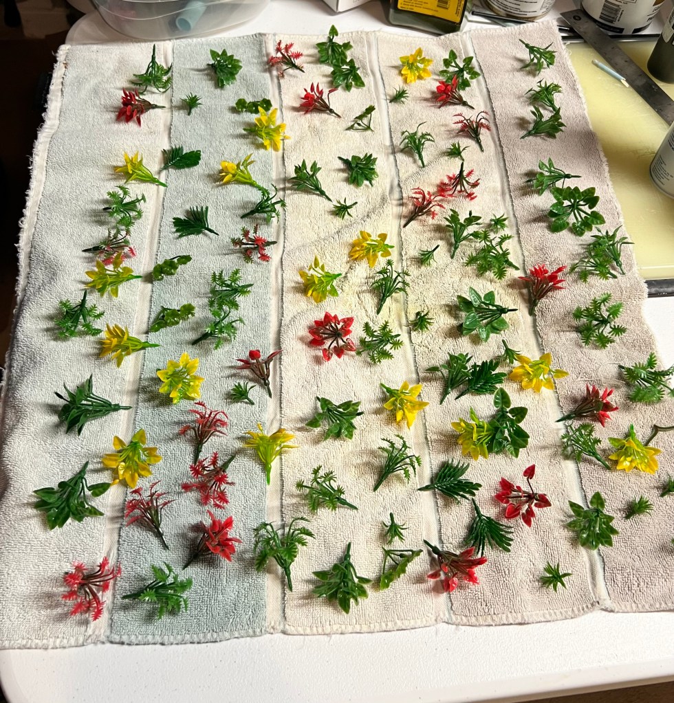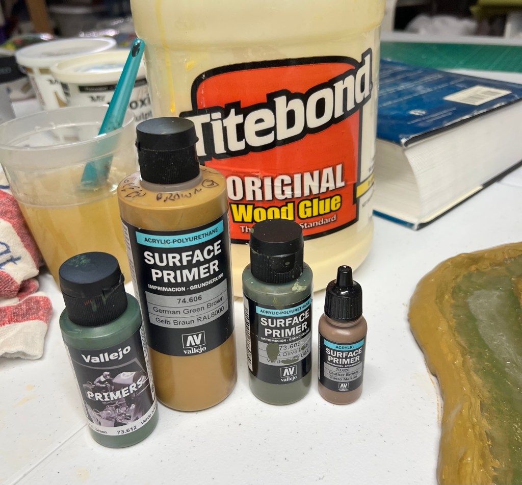 I list the paints that I used for the roads at the end of this blog post. For my records, I am sharing these materials I use for these projects with you, dear reader. You’ll see the list below detailing the process and materials for both the roads/bases and the Avenger torpedo bomber.
