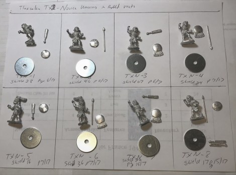 The painting plan for the Tlaxcalan Novices. I did find that I needed to change weapons selection after painting as some did not fit well of did not look as good.