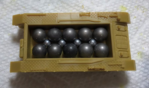 I remembered that I had some ball bearings and some BB’s – so the Panzer IV’s got these and PVA glue as ballast.