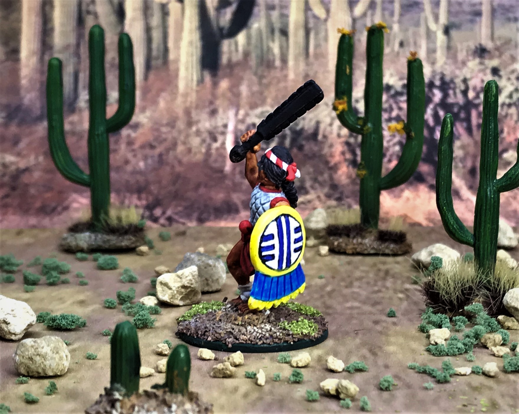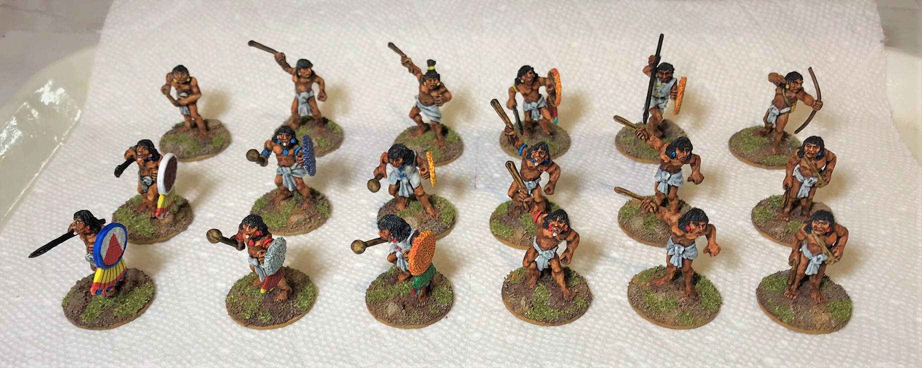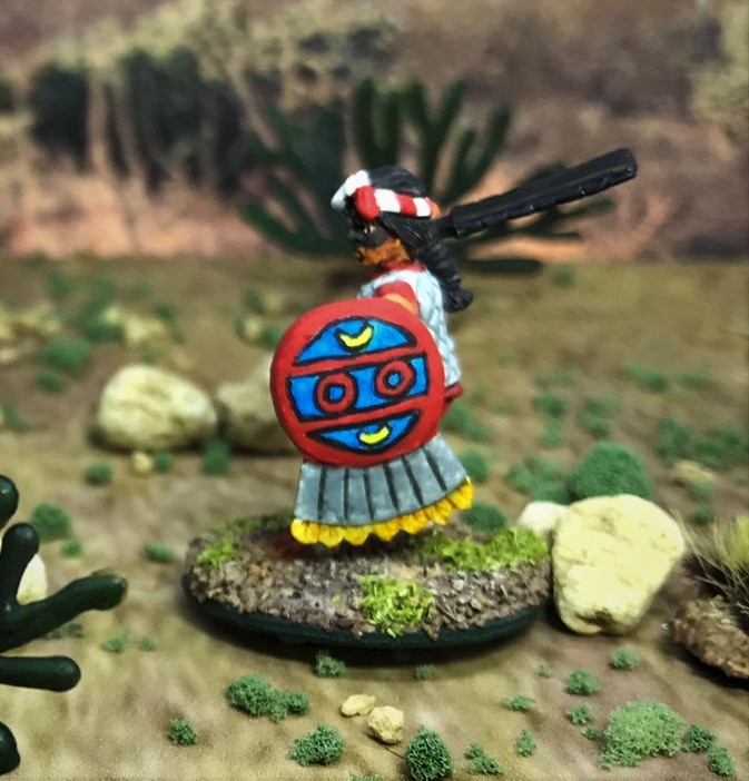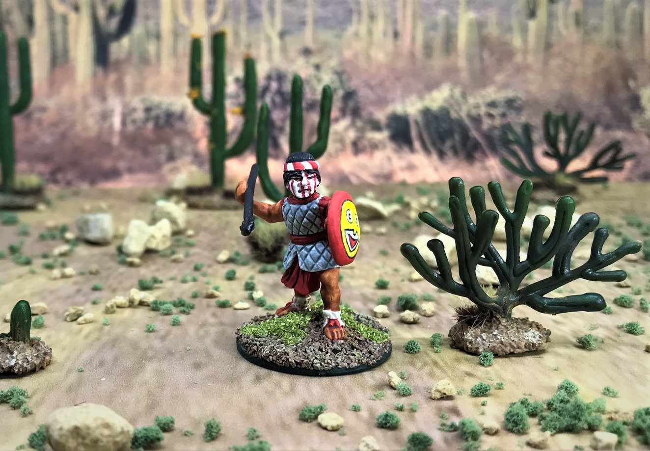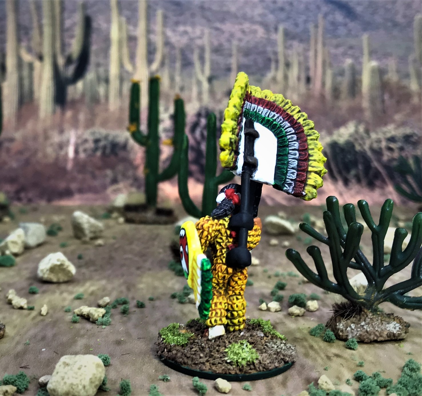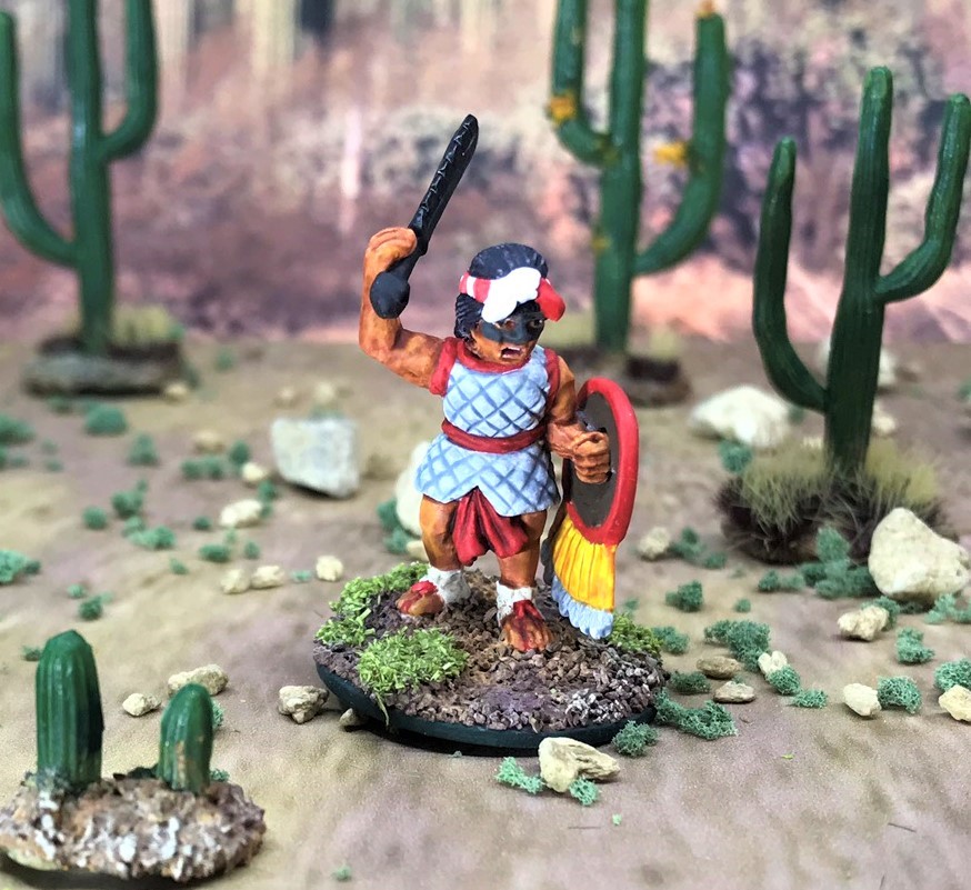 I just finished adding 18 Aztec Novice Warriors to my forces for games of Feudal Patrol™ – using the “Civilizations Collide” supplement that I have discussed previously on several posts (you can see list of these posts at the end of this post if you’d like to see what you’ve missed). I had needed to add some more novices to pair up with veterans for the game. Aztec veteran warriors would have novices attached to them for training and development in the tactics and techniques of Mesoamerican warfare. Aztecs preferred capturing their enemies versus killing them – after all, they wanted live captives for sacrifice.
