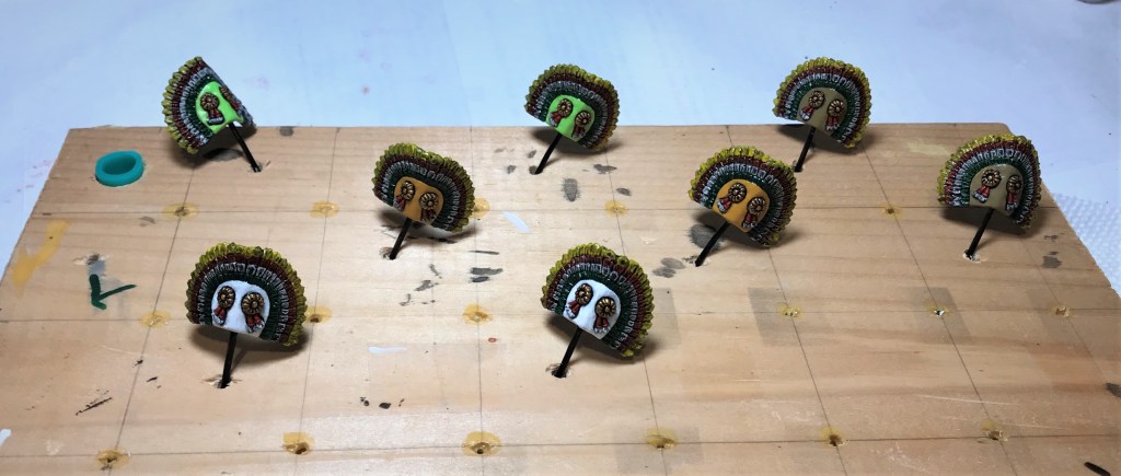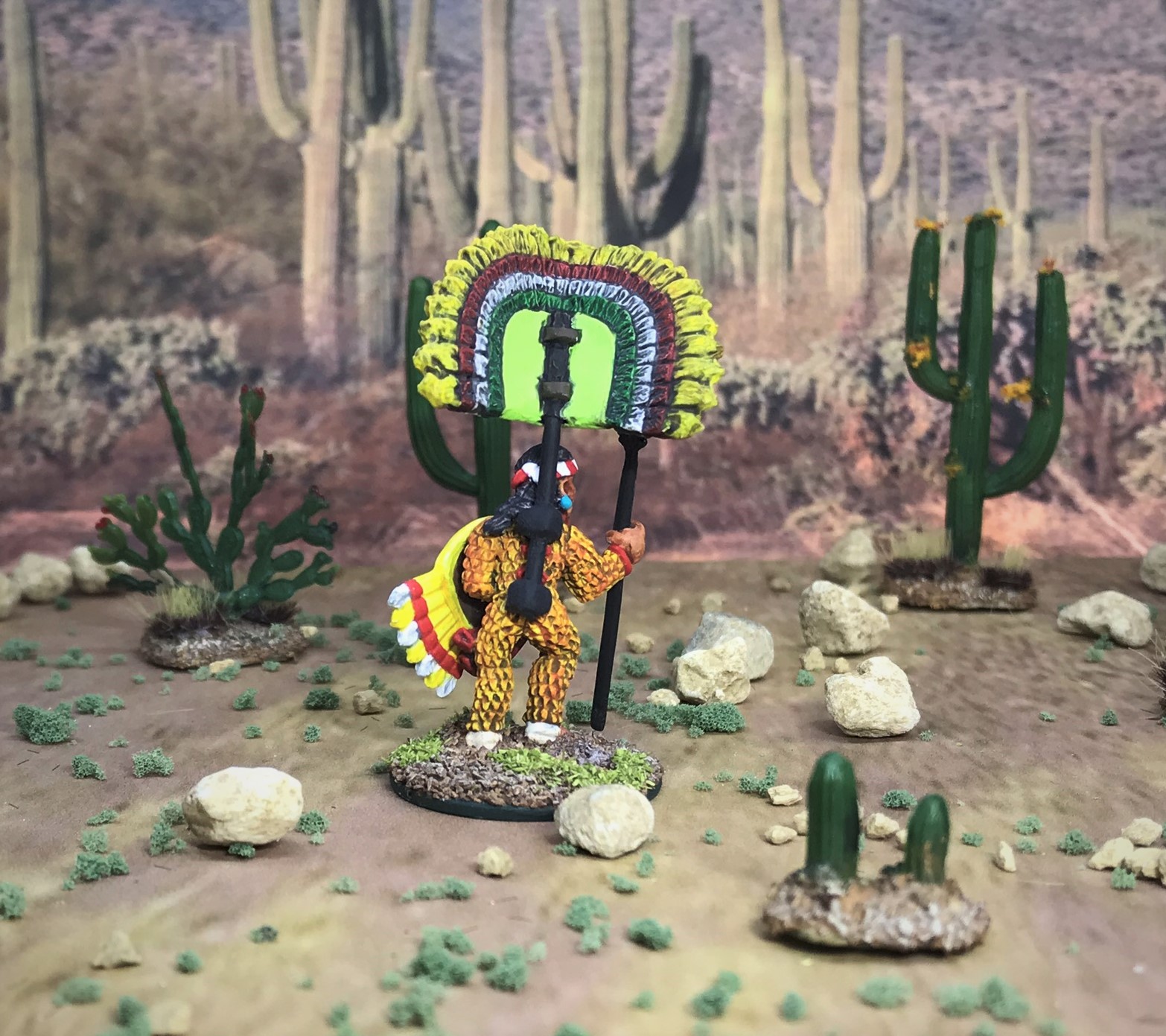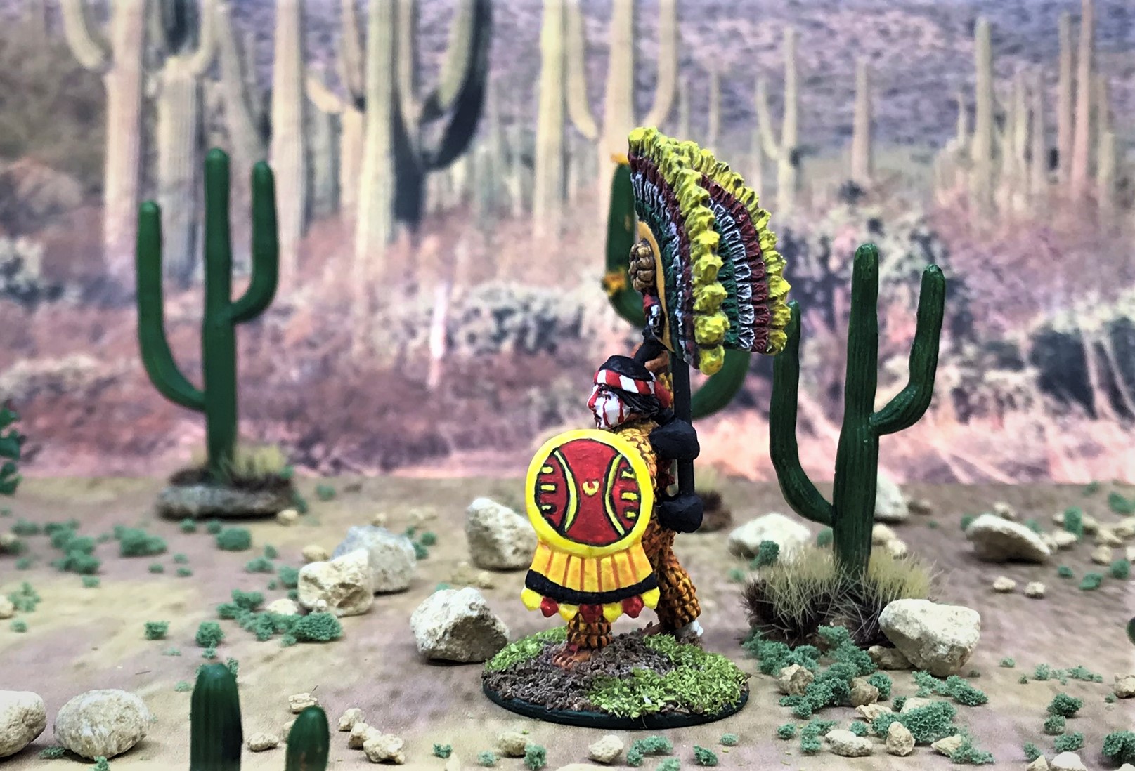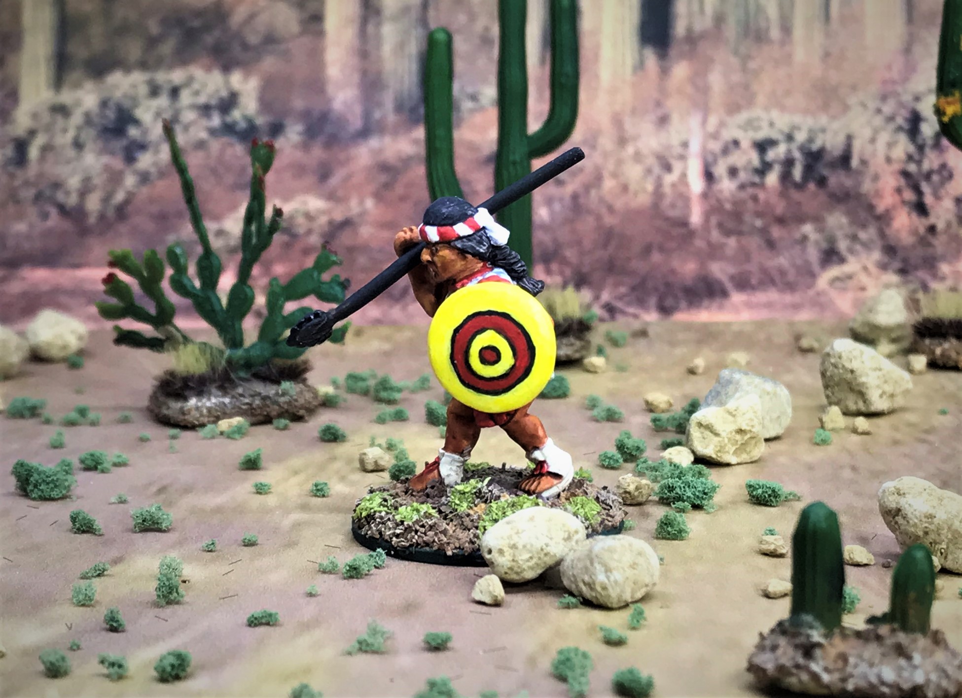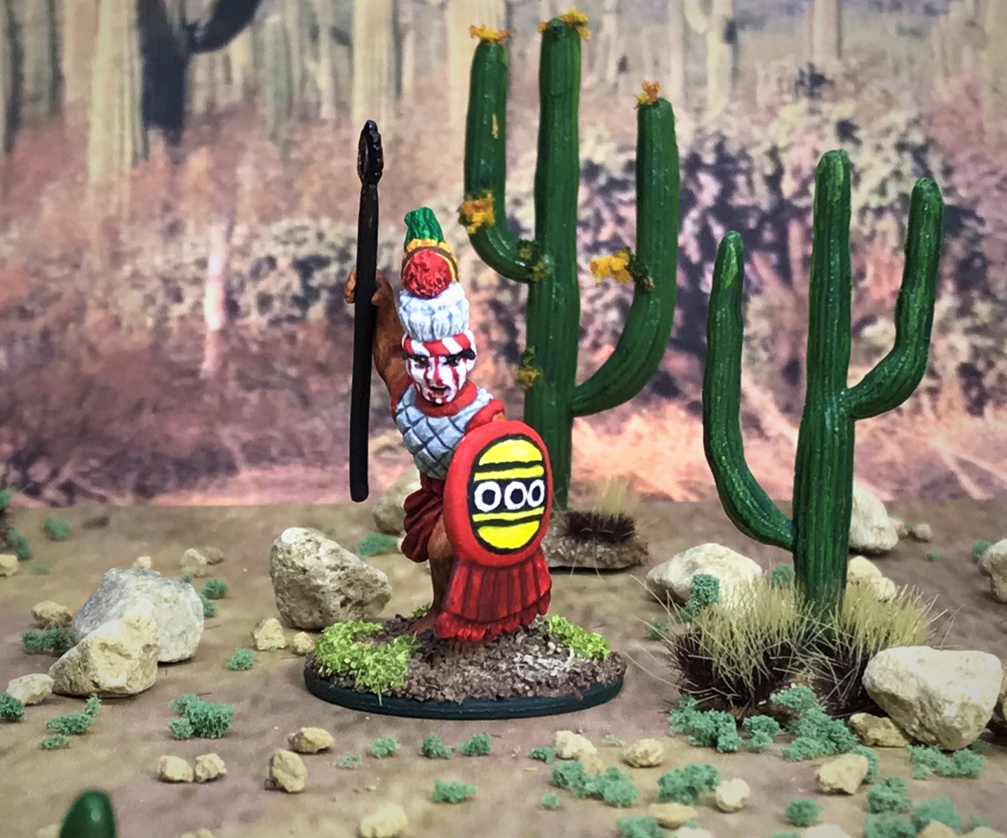 I just finished adding 18 Aztec Novice Warriors to my forces for games of Feudal Patrol™ – using the “Civilizations Collide” supplement that I have discussed previously on several posts (you can see list of these posts at the end of this post if you’d like to see what you’ve missed). I had needed to add some more novices to pair up with veterans for the game. Aztec veteran warriors would have novices attached to them for training and development in the tactics and techniques of Mesoamerican warfare. Aztecs preferred capturing their enemies versus killing them – after all, they wanted live captives for sacrifice.