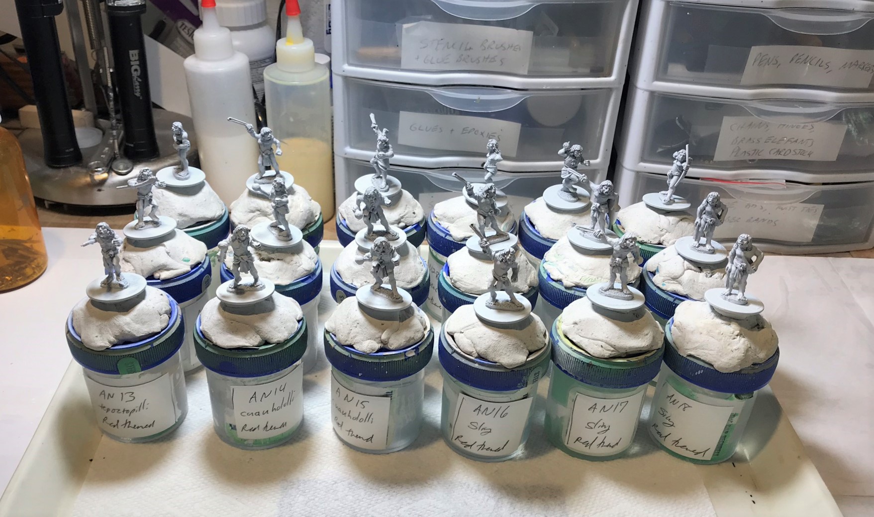 Because I had bought two 6-figure blisters of AZ016, I wanted to paint them differently enough so that they would be interesting on the tabletop. I will show the similar poses together, and then the single poses.