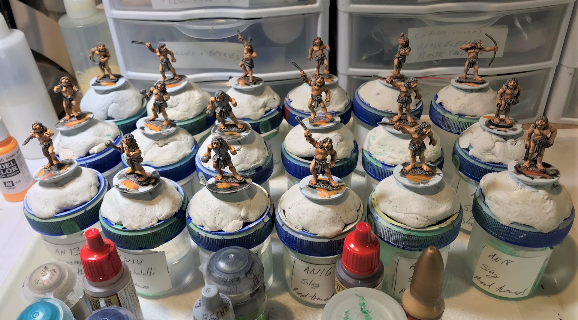 PAINTS, INKS, GLAZES, SHADES, WASHES, PIGMENTS, FLOCKING, GLUES AND MORE THAT I USED ON THESE AZTEC NOVICE WARRIORS:
