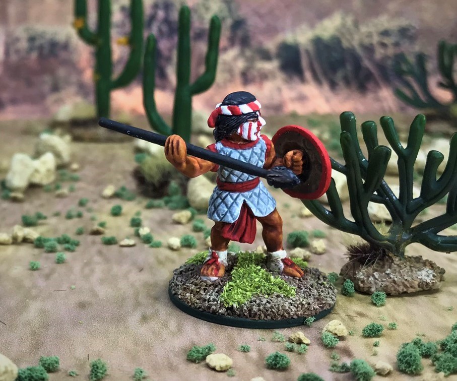 AN13 and AN19 – armed with a tepoztopilli (obsidian-edged thrusting spear pronounced tay-pose-toe-pee-lee) and a shield, but no other armor.
