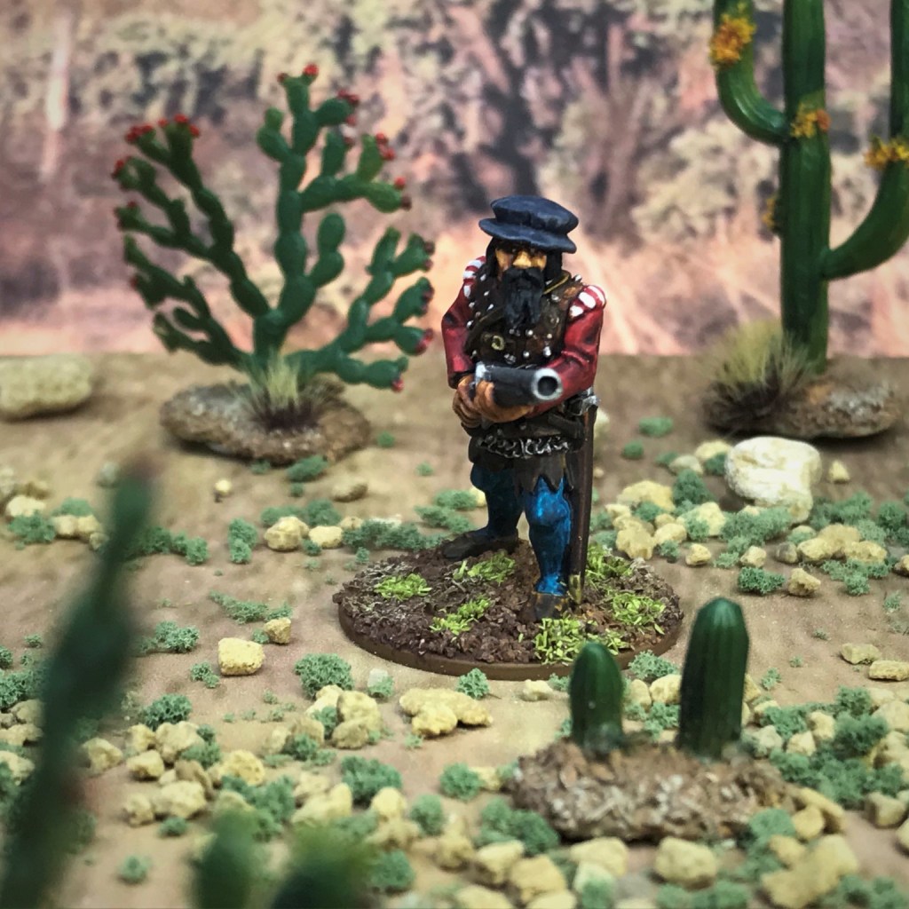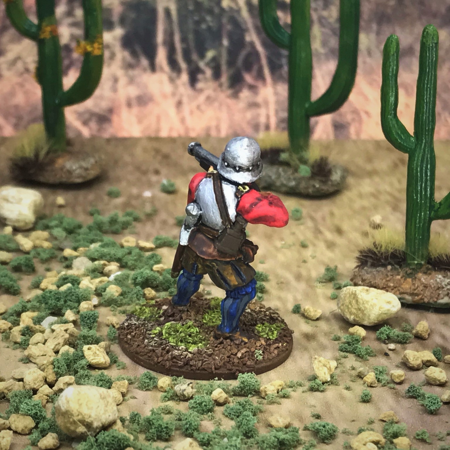 I also experimented a bit with this one. I saw some images of conquistadores with some yellowish and red colors on their lower bodies. I made the choices you see below. I like the color contrast with the blue blouse – but feel free to let me know your thoughts in the comments section on how I painted him or any of the others.