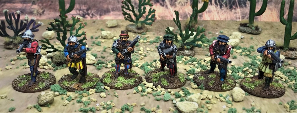 - Merciless Adventurers (this post) – Wargames Foundry #SB014 (6 Conquistadores with arquebuses)
