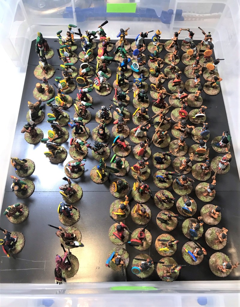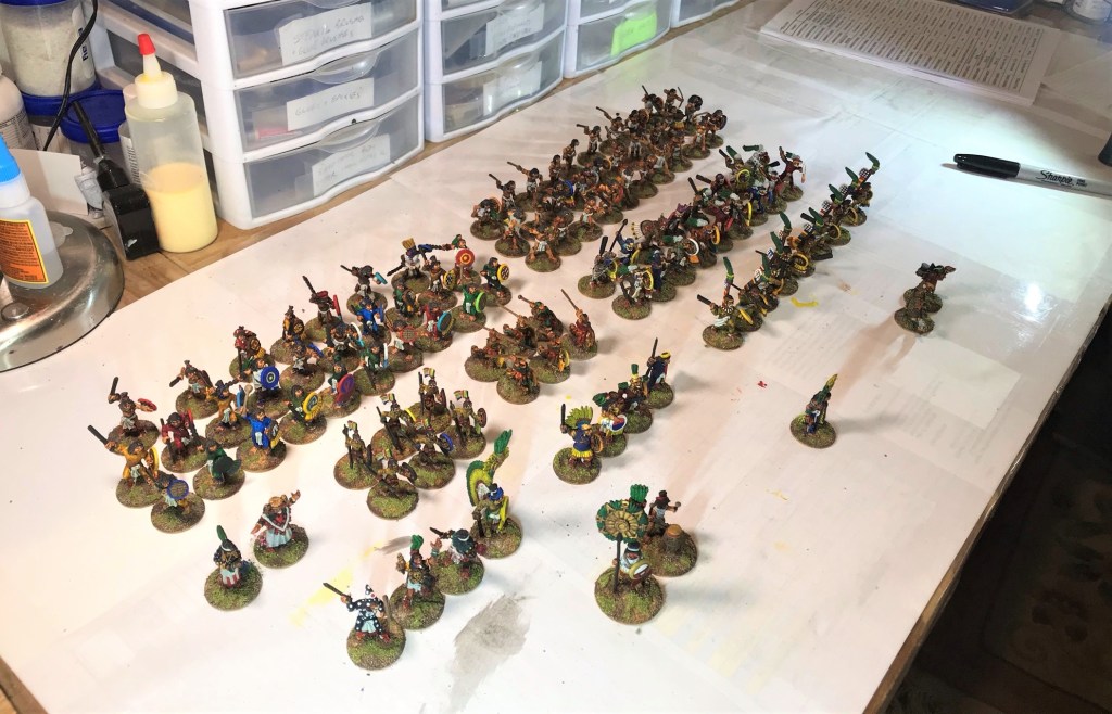 Total figures completed to date for this project: 153 figures: 109 Aztecs, 32 Tlaxcalans, 12 Spanish Conquistadores