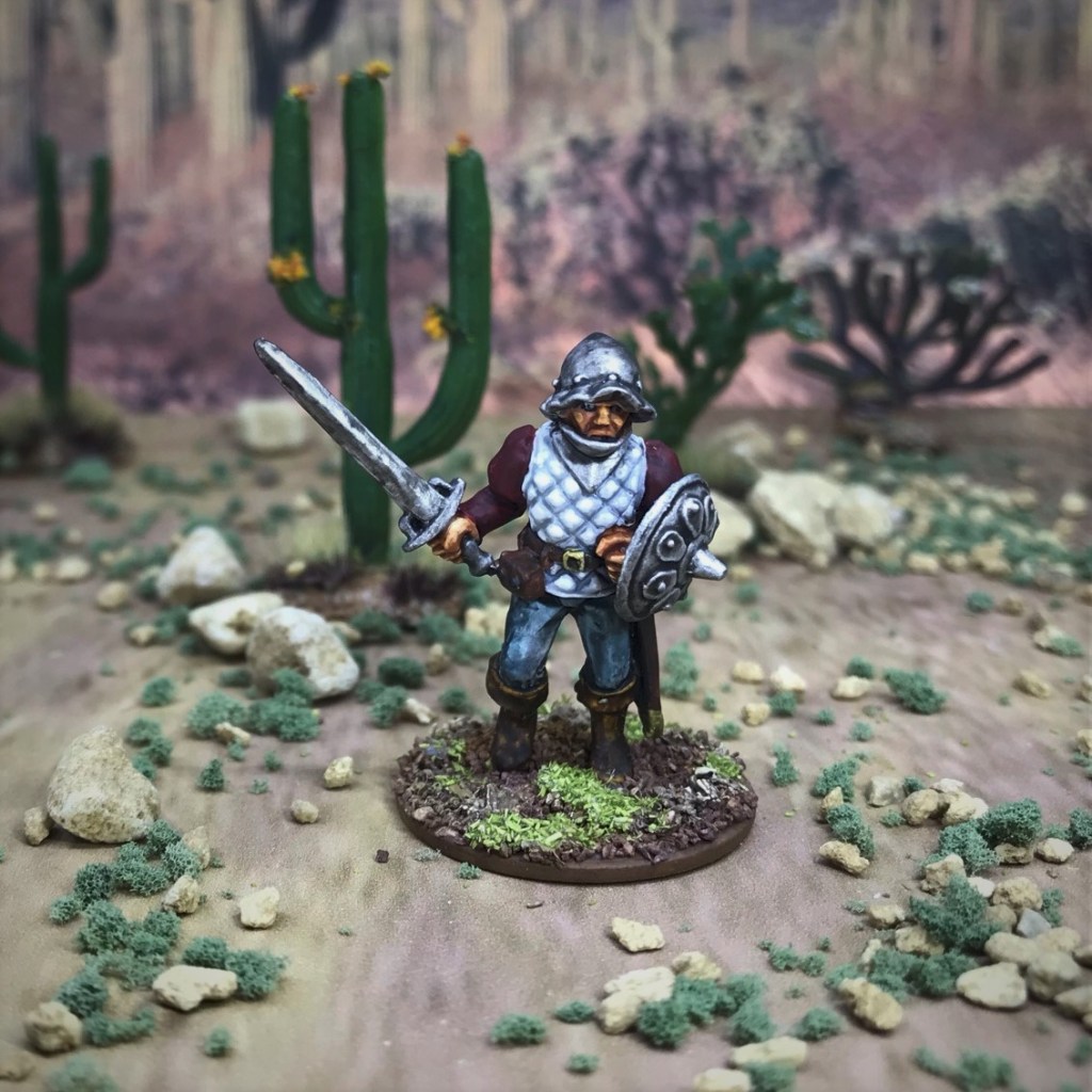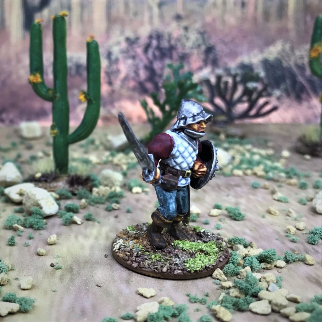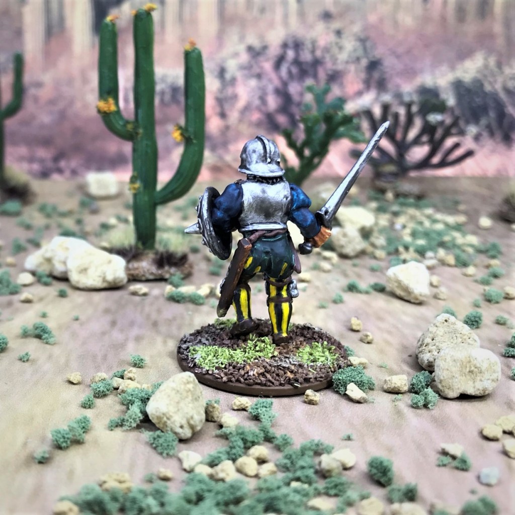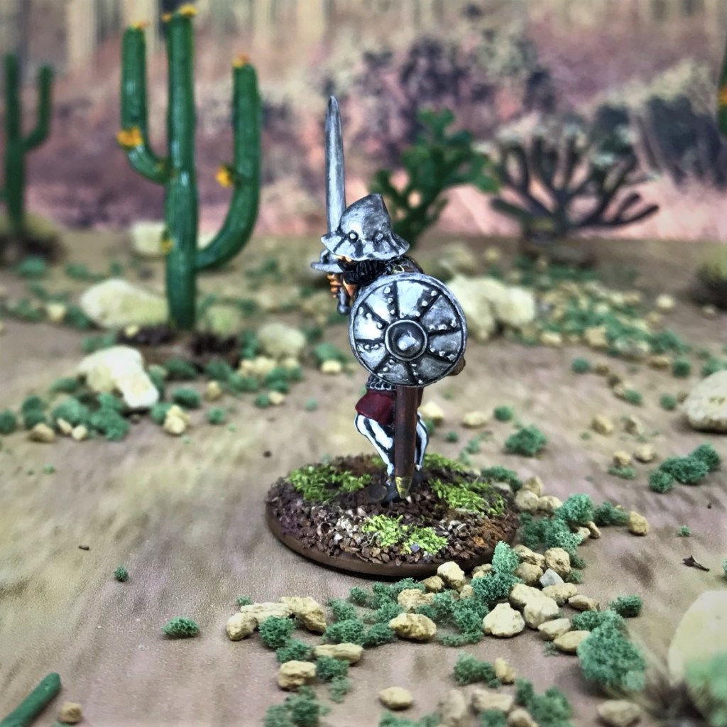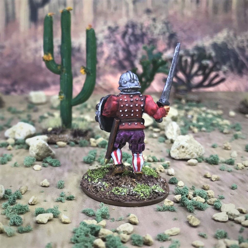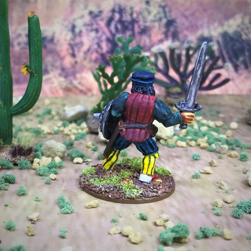 - Conquistador Sword and Buckler Men (this post). 18 figures total in three blister packs: Wargames Foundry #SB015 “Swaggering Swordsmen”, #SB016 “Brutal Sword and Buckler Men”, and #SB017 “Bold Bladesmen”.
