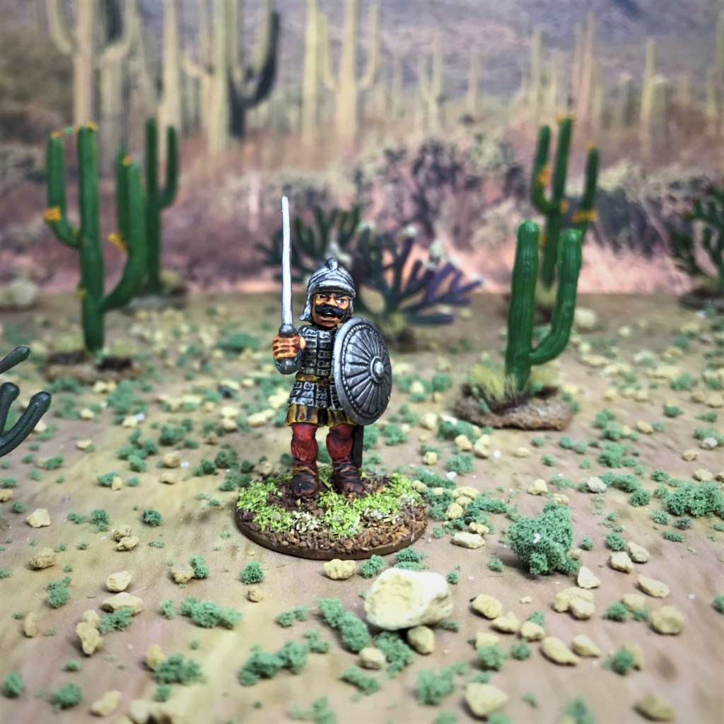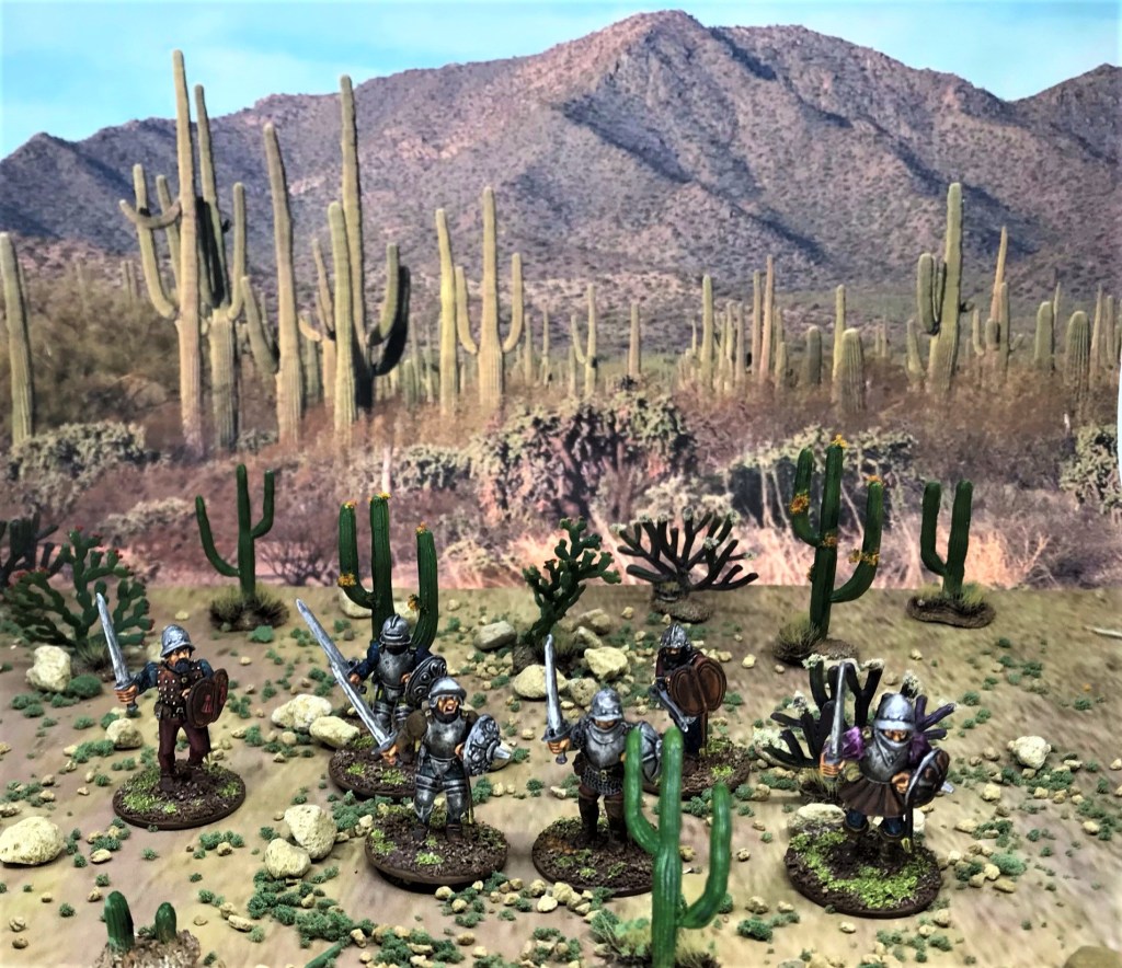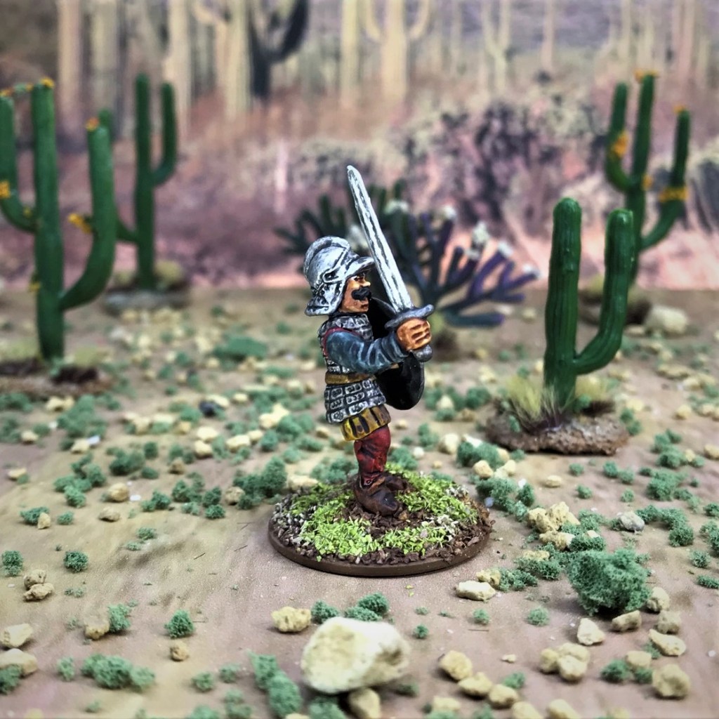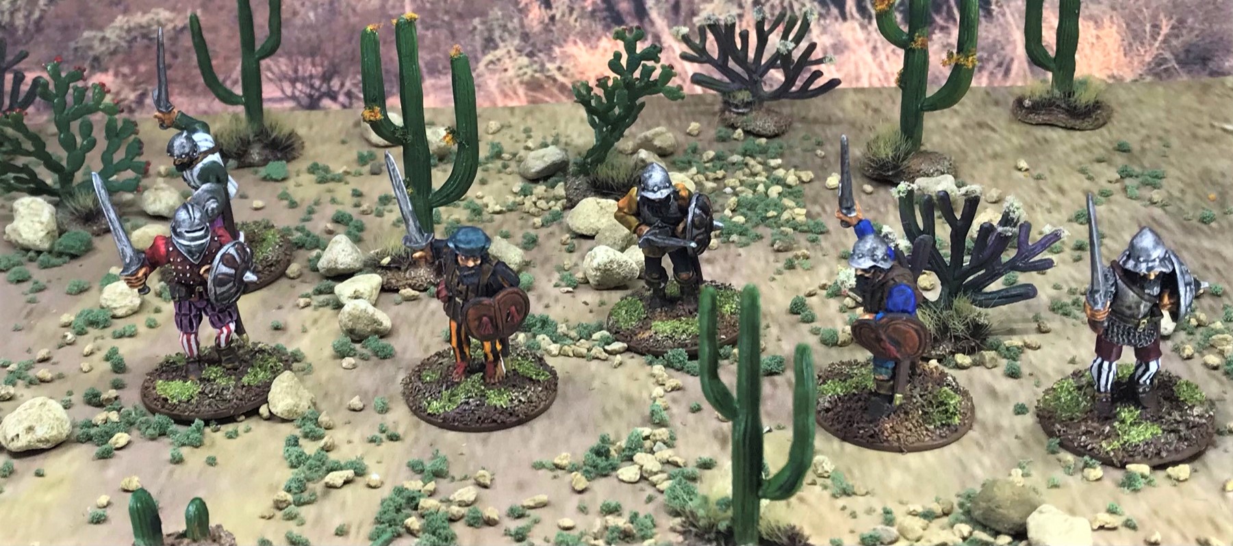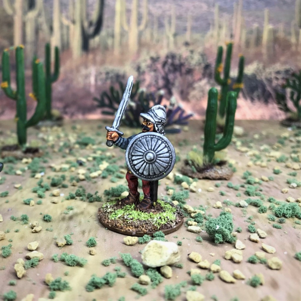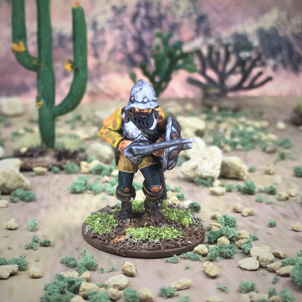 - Conquistador Sword and Buckler Men (this post). 18 figures total in three blister packs: Wargames Foundry #SB015 “Swaggering Swordsmen”, #SB016 “Brutal Sword and Buckler Men”, and #SB017 “Bold Bladesmen”.