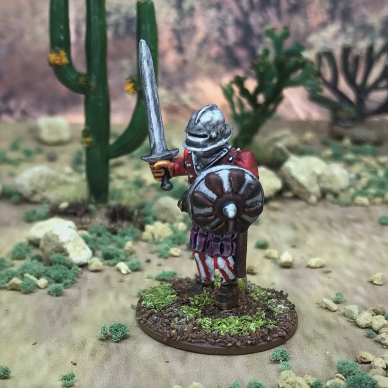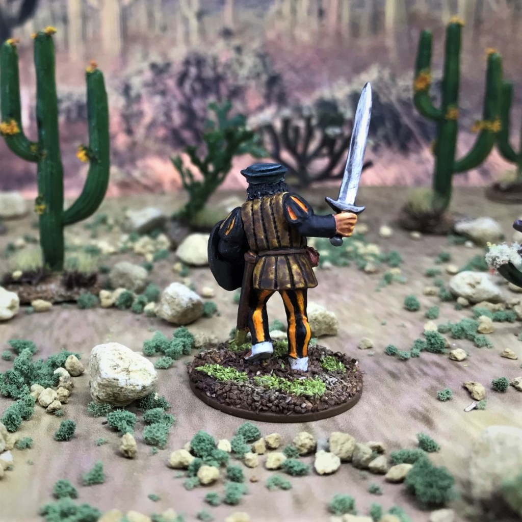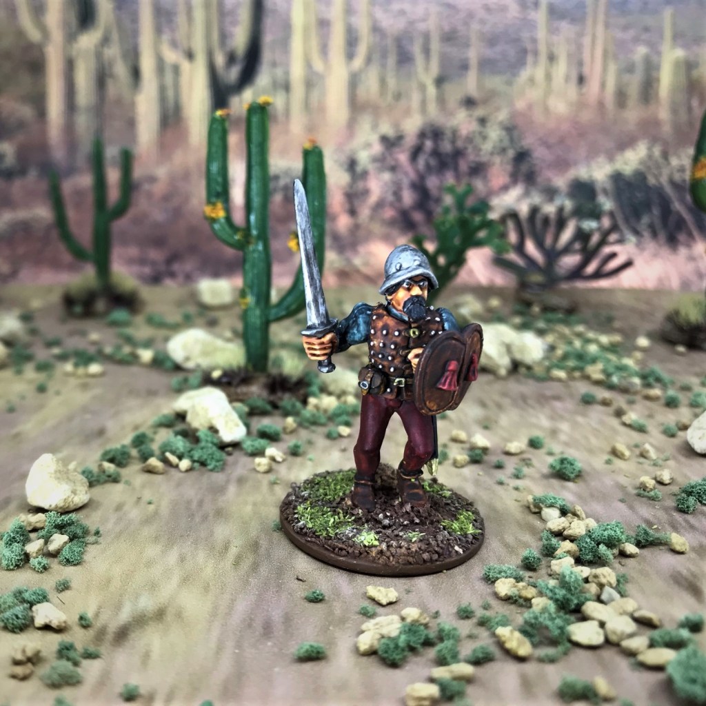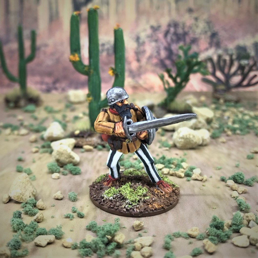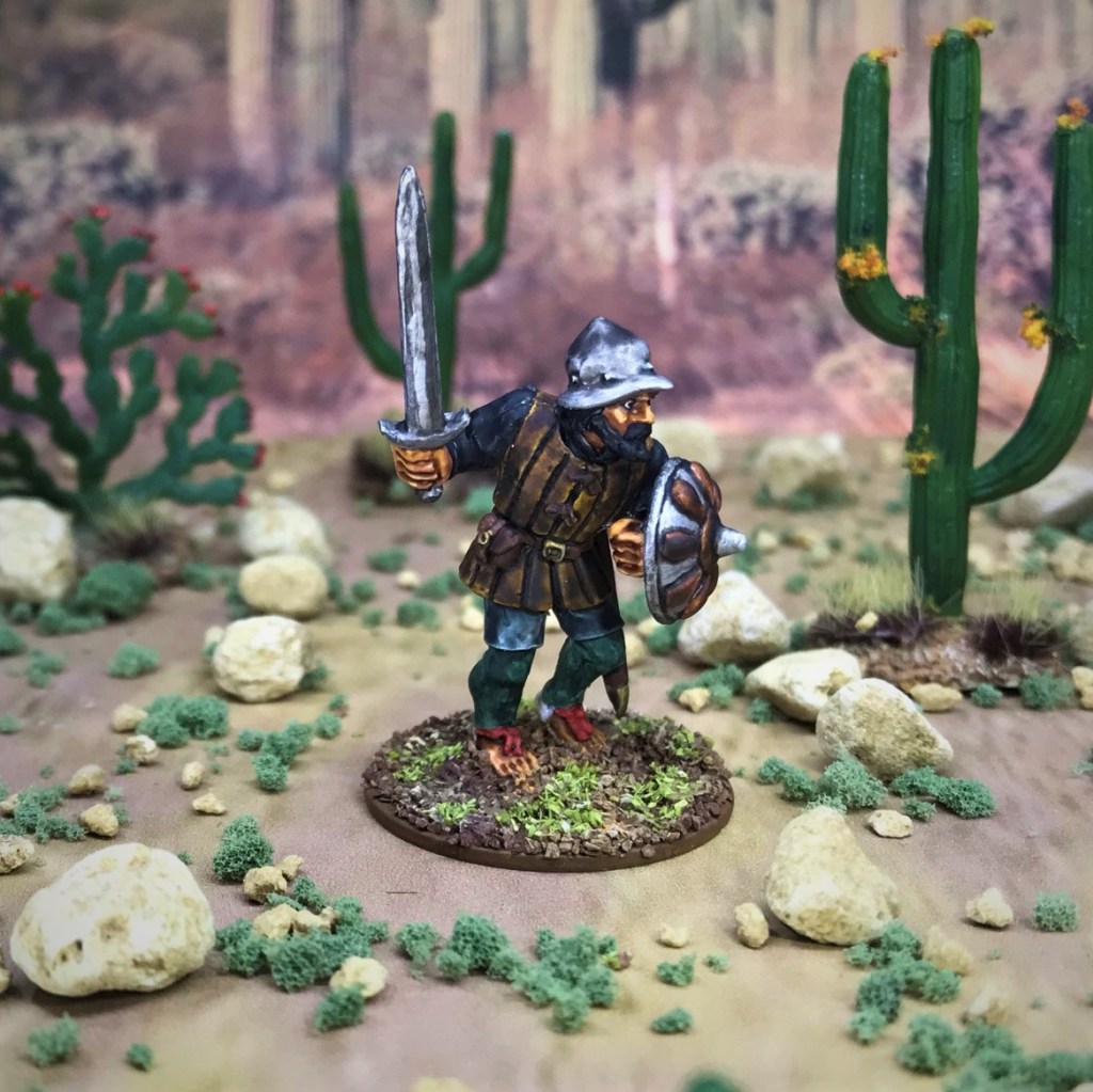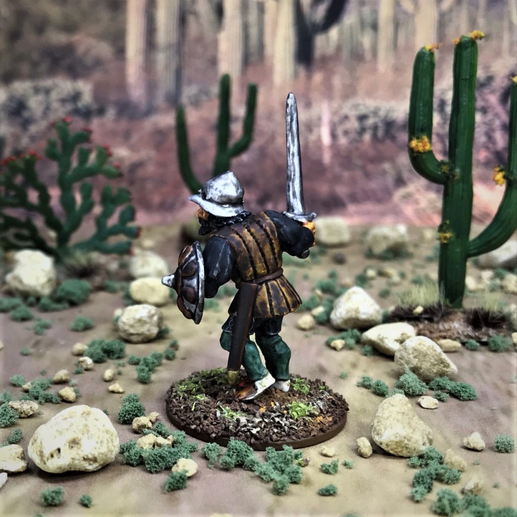The English term “Sword and Buckler Men” refers to what the Spanish called rodeloros (shield bearers) and espadachines (swordsmen). For those unfamiliar with the term, a buckler is a small shield held by the fist and used mainly to deflect an opponent’s blows (as opposed to mainly protecting against missile weapons). The Conquistadores were professional soldiers and veterans of many wars – and Sword and Buckler Men made up the bulk of their number. It is well-known that the Conquistadores had a major impact during the Age of Discovery/Exploration. They had fought extensively in the Italian Wars (1494-1559) and had the spirit of the men who had driven the Moors from the Iberian peninsula back in 1492 during the Reconquista. The Conquistadores brought their experience and their warfighting characteristics to the New World.