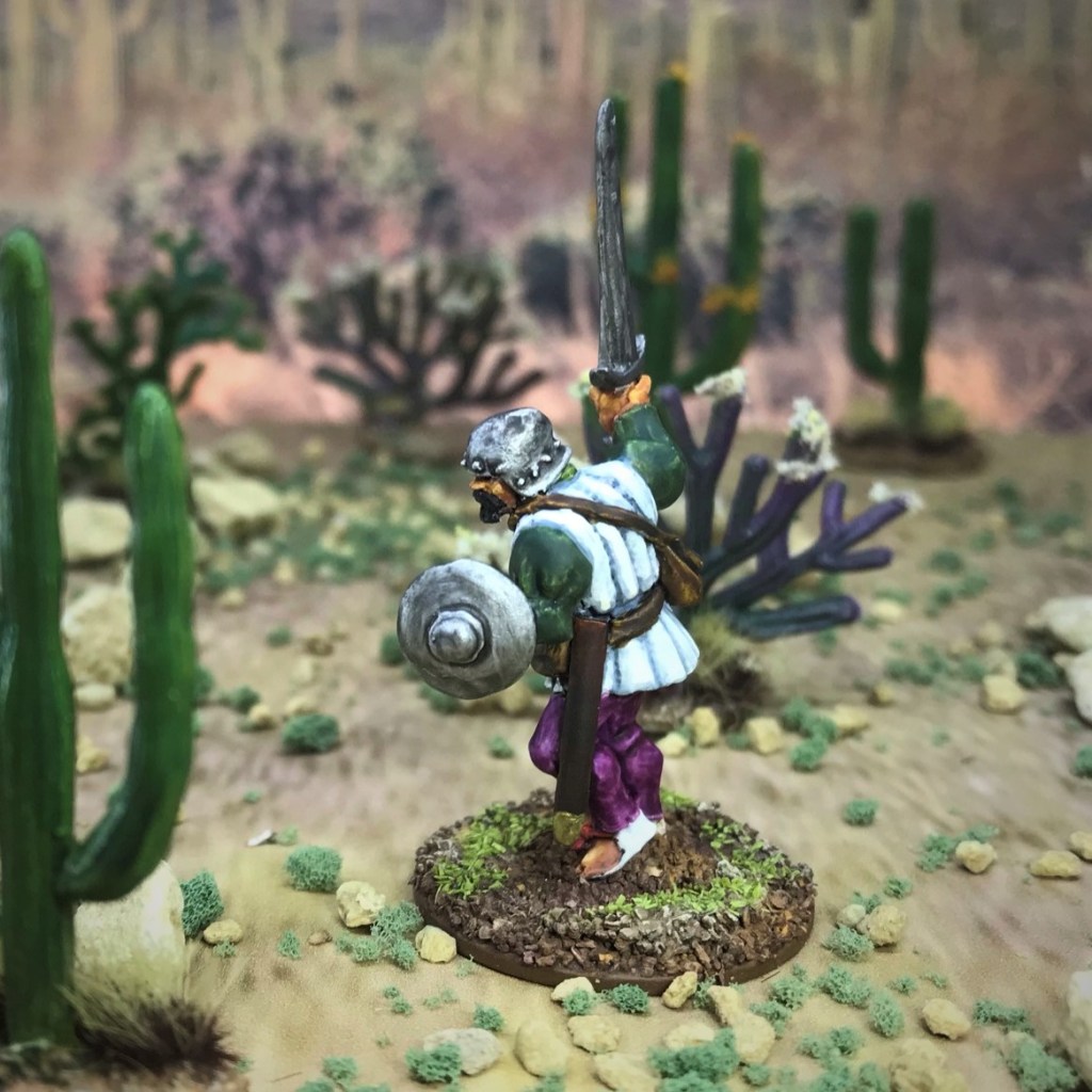 I have incorporated these into my games of Feudal PatrolTM ) using my supplement for Civilizations Collide. I definitely need the bulk of my Conquistador forces to be made up of Sword and Buckler Men (let’s call them SABM for short). To reflect their elite status and general all-around technological and tactical excellence, they are pretty expensive point-wise versus most Aztecs. This is as it should be – as SABM had better weapons, armor, and experience. The Aztecs had numbers – which the Conquistadores made up with allies like the Tlaxcalans.