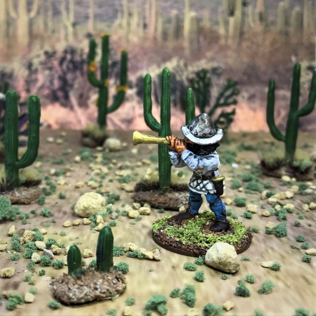 - Conquistador Foot Command, Crossbowmen, and a Couple of Officers. 11 figures total: Outpost Wargames Services #CONC1 “Conquistador Foot Command” (a leader, a banner bearer, a drummer, and a bugler); Eureka #100CON04 “Crossbowmen” (5 crossbowmen); and Eureka CONC1 “Conquistador Officer” and an unknown SKU officer (2 officers)