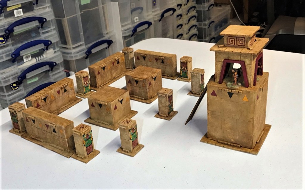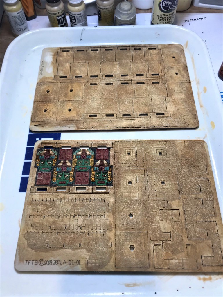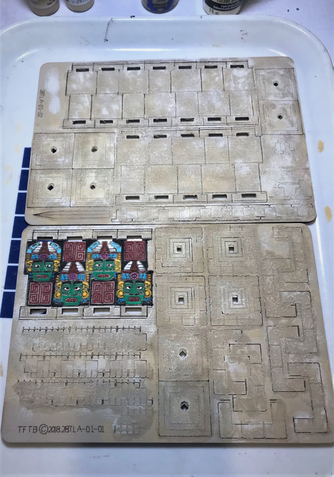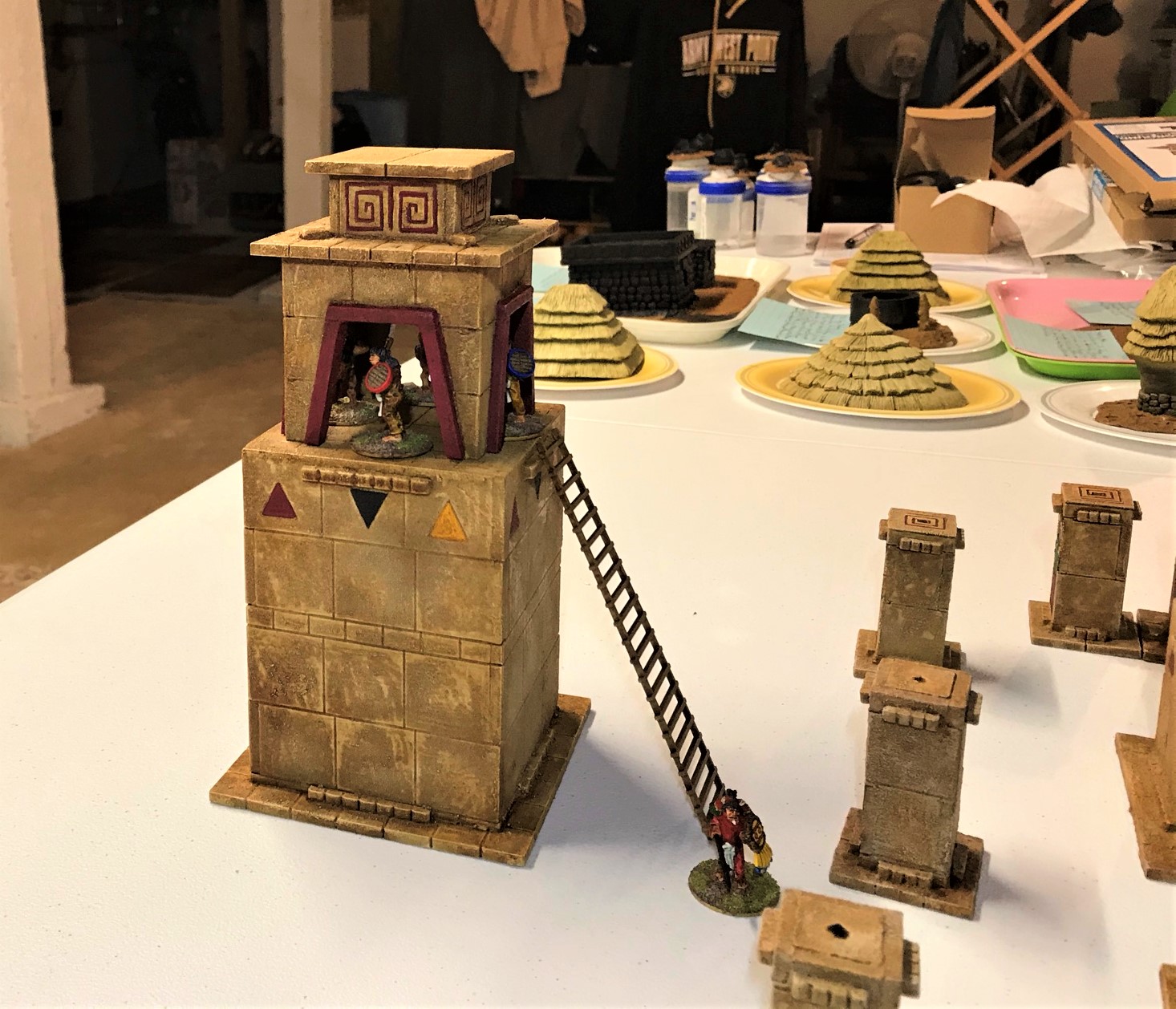 It was a nice surprise to get this scatter terrain. I used all of it except one – which was an African mask. I based it and primed it but did not paint it. As I will not likely use it, it will be another (5th!) prize in “Mark’s Aztec Building Challenge Contest“.