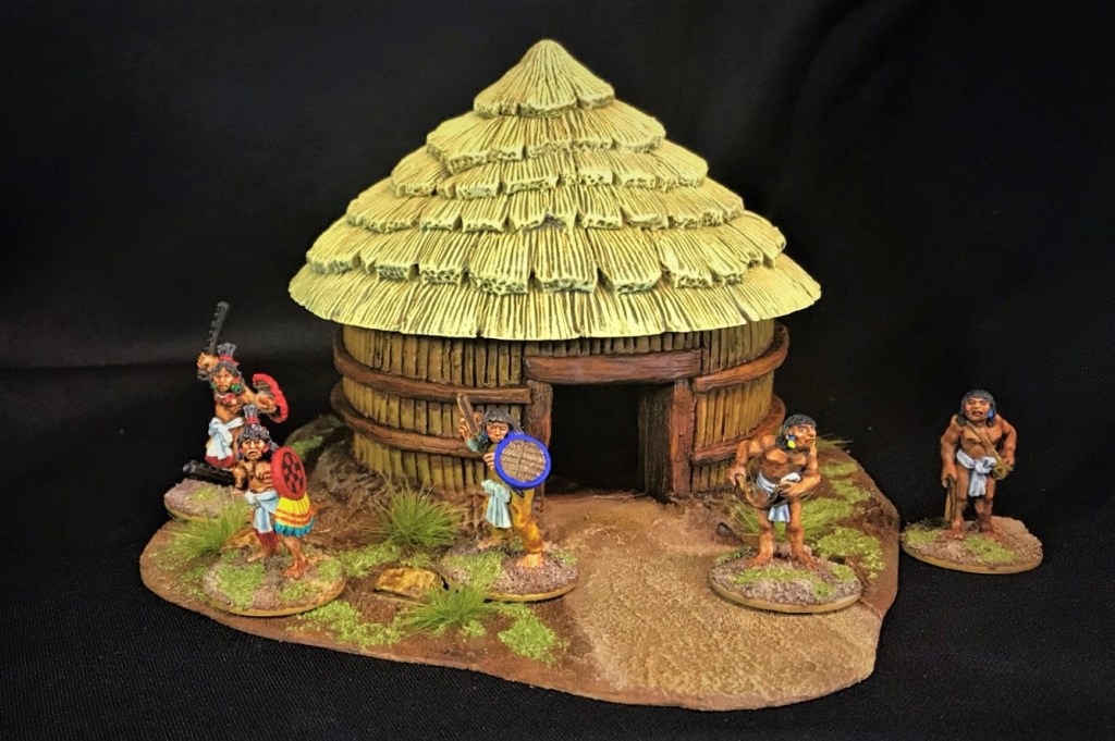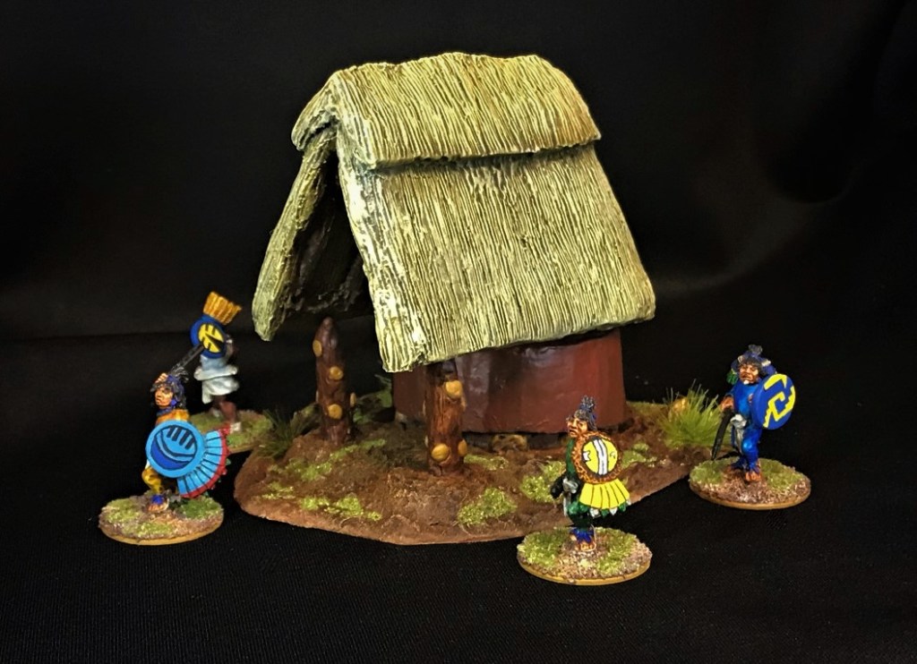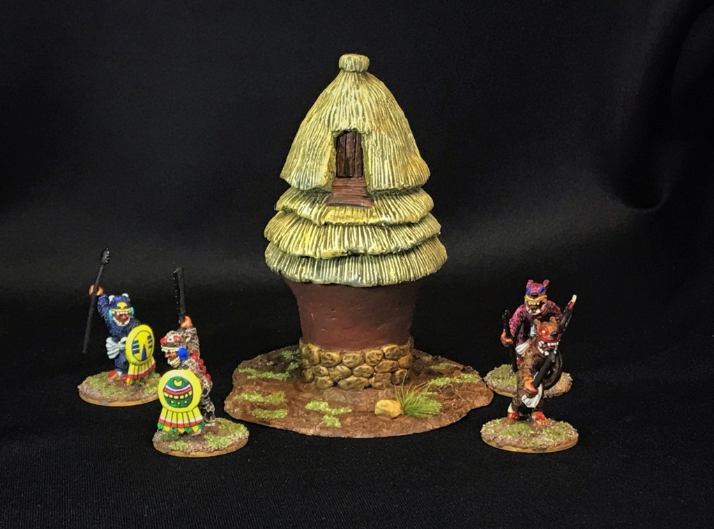 The term cuezcomatl refers to a granary storage structure that was used in Mesoamerica before the arrival of the Spanish and even up to today in some rural areas (see reference here). The model was interesting to paint, and working on it also helped me to prepare for the other thatched roofs. In the end, I decided to use Army Painter Soft Tone (the “dip”) with a brush. This allowed me to both get some good detail shading as well as to protect the model. I can see this model being useful as a terrain piece, as well as an objective marker. The Aztecs were quite avid practitioners of raiding their neighbors for food as well as captives (or anything else that they wanted to take), as were all Mesoamerican peoples of the era. The Aztecs were just more adept at the practice.