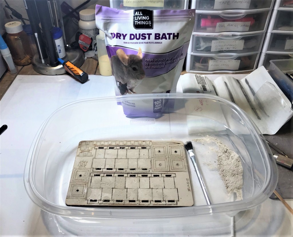 I thought it prudent – prior to priming them – to give all a thorough scrubbing and washing. I also saw a need to install 1/8″ neodymium magnets for the resin structures with roofs – to make them more stable (and stay on the buildings during games). This would be useful on the tabletop and yet keep them easy enough to open up for gaming. I used different patterns for the magnets as you will see below – so the roofs won’t end up on the wrong buildings in error.