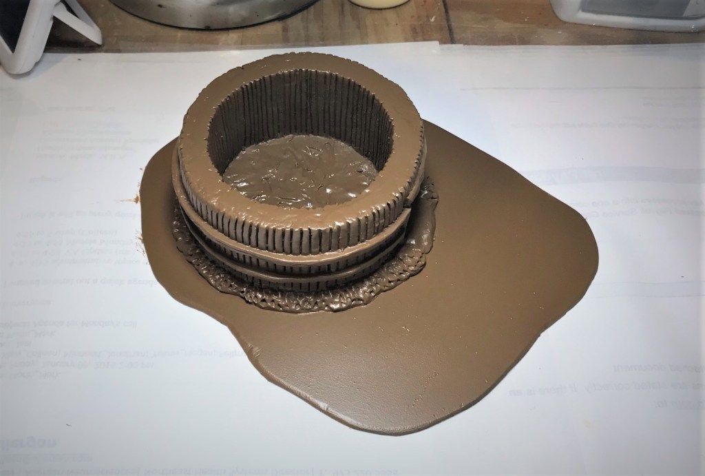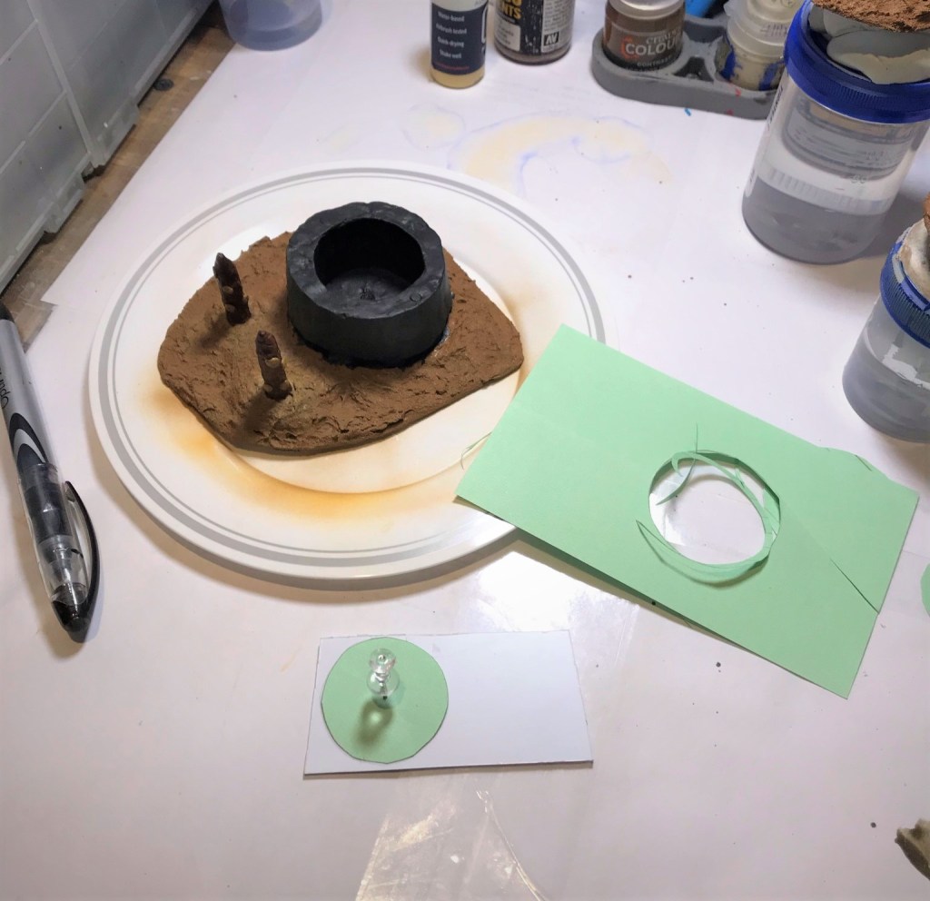 The piece with magnets installed and on the styrene base awaiting priming weather