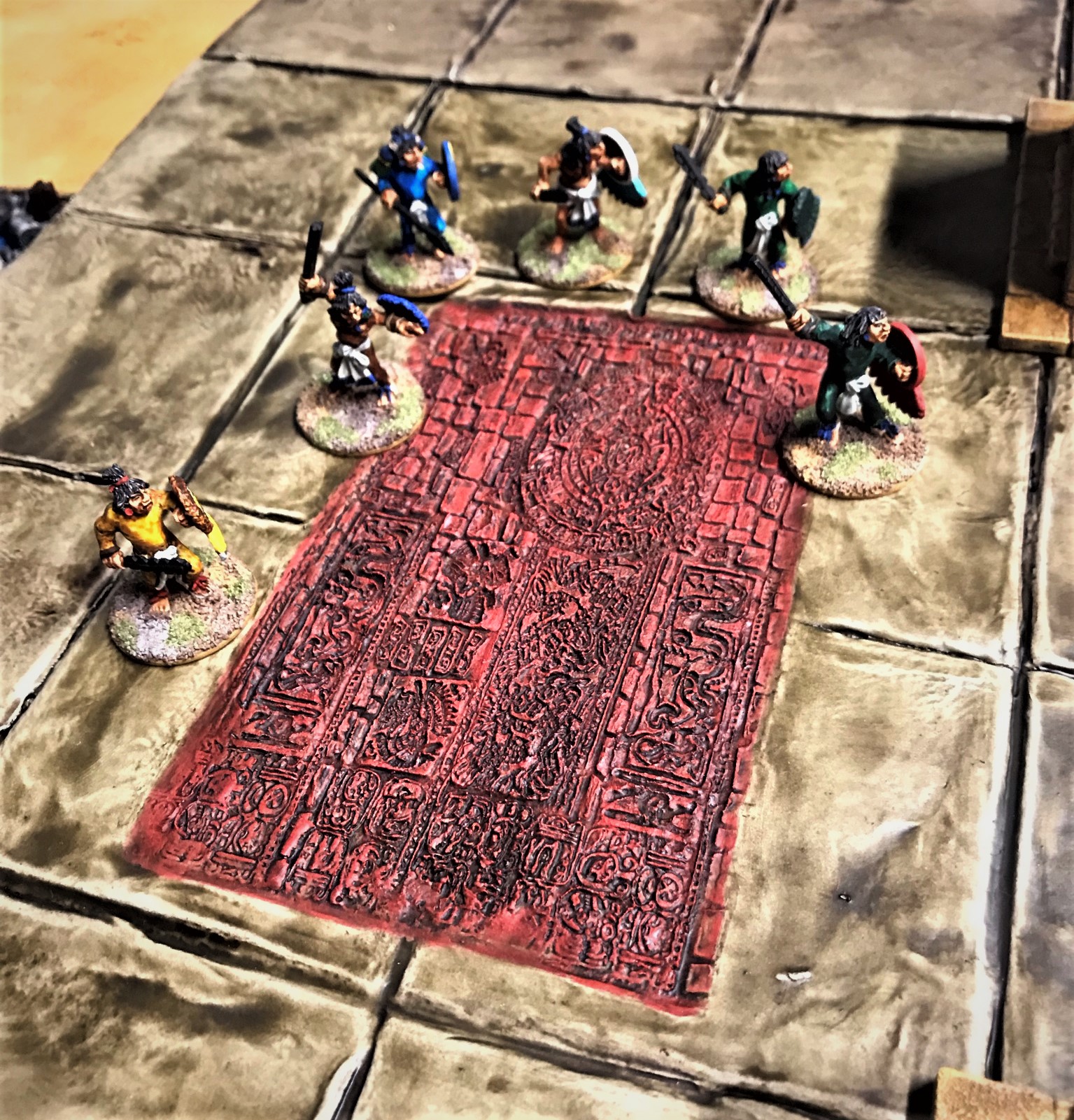 Yes! It’s finally time for the FINAL REVEAL of my Aztec cityscape. It’s been a labor of love – to recreate this tabletop for gaming. What game you ask? Why of course – Buck Surdu’s Feudal Patrol™! I wrote the gaming supplement for Feudal Patrol™ games during the period of the Spanish Conquest. The supplement involves the Conquistadores, the Aztecs, the Tlaxcalans (and more Mesoamericans who fought the Aztecs), the Maya, and the Inca (in South America). I called it Civilizations Collide, and it’s a free download from Buck’s website or from Sally4th in the UK. If you have not checked this excellent game out – do it!