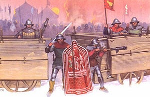 I need to give you a condensed chronological synopsis – the history of this time is quite full of twist, turns, and intrigue. The timeline is confusing but important for context. Therefore, listed here below is a condensed chronology with respect to the use of war wagons and a couple of possible wargame scenarios that I am working to build: