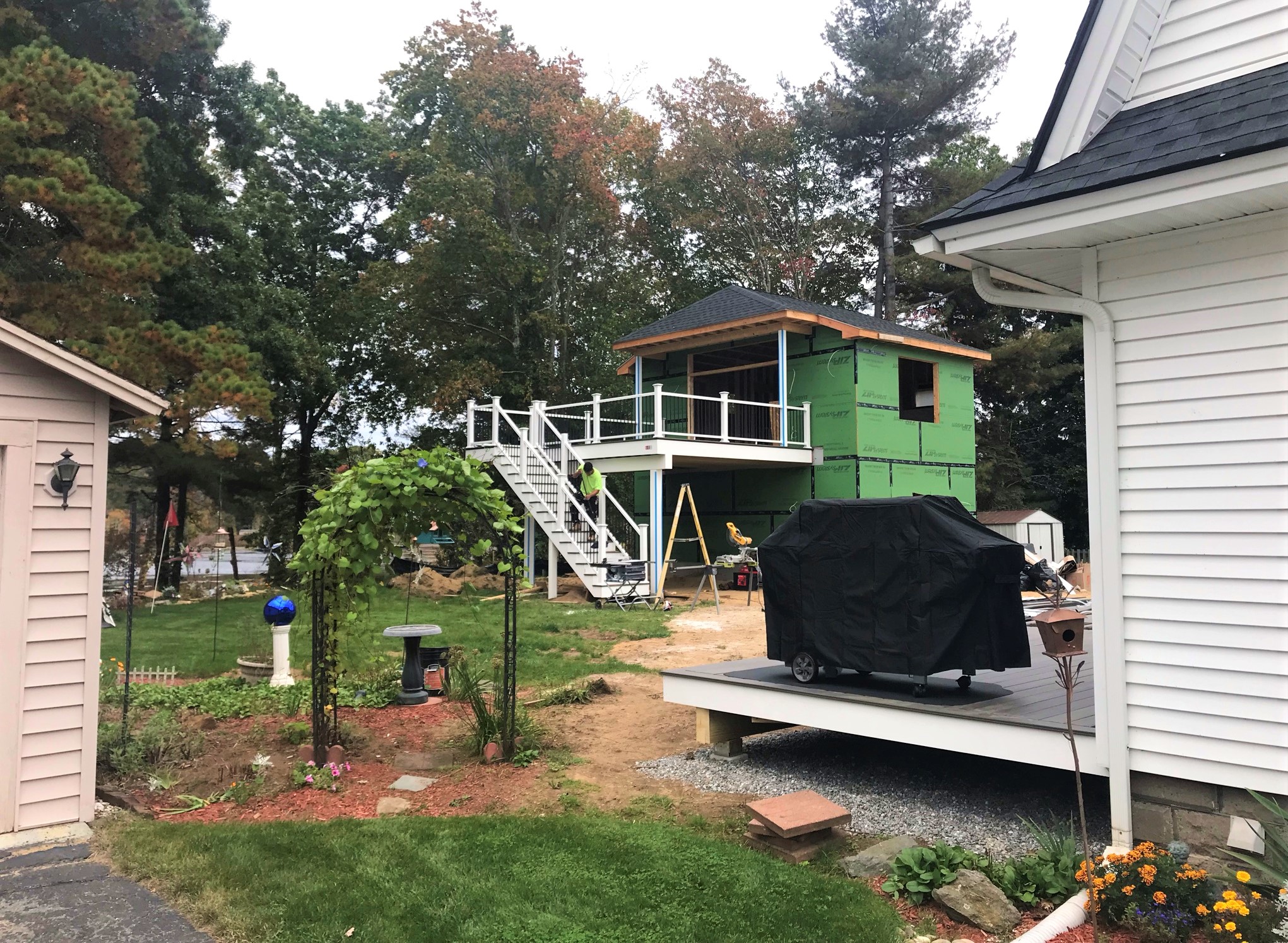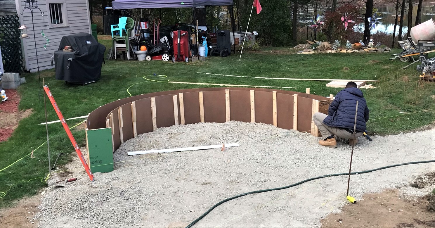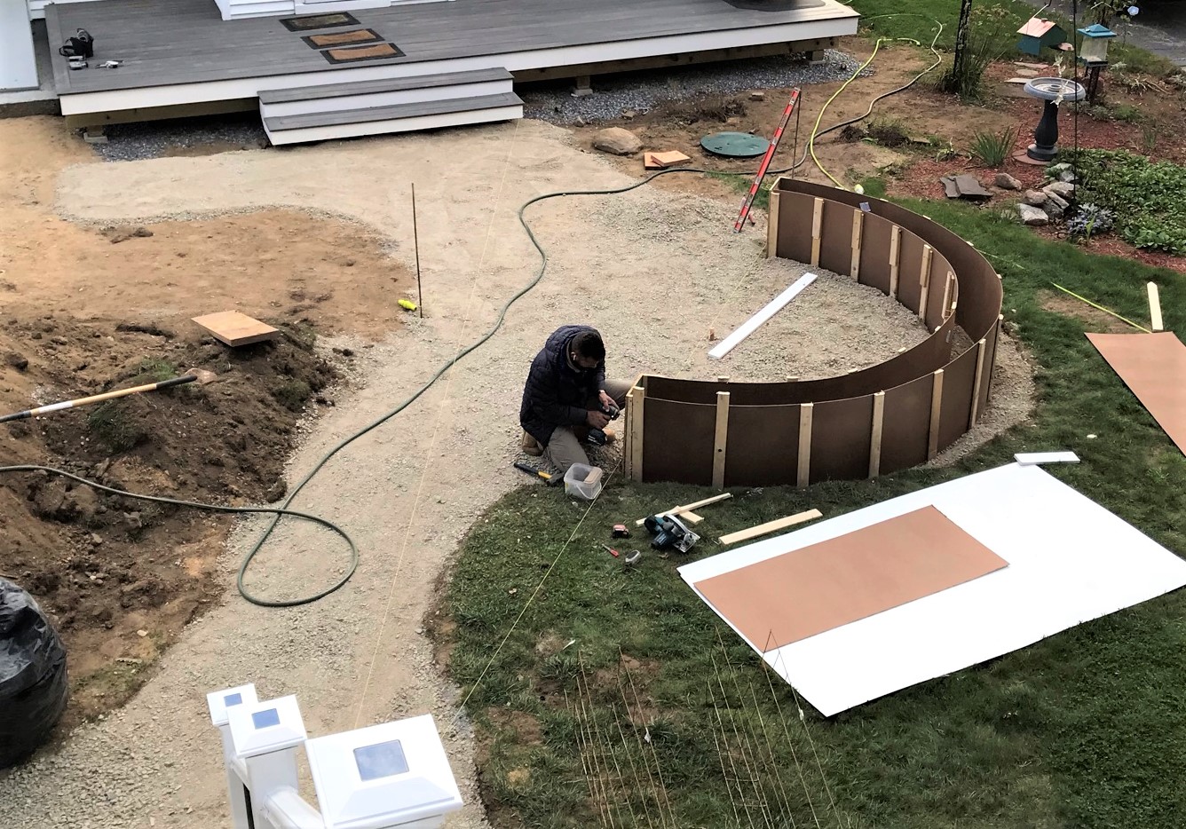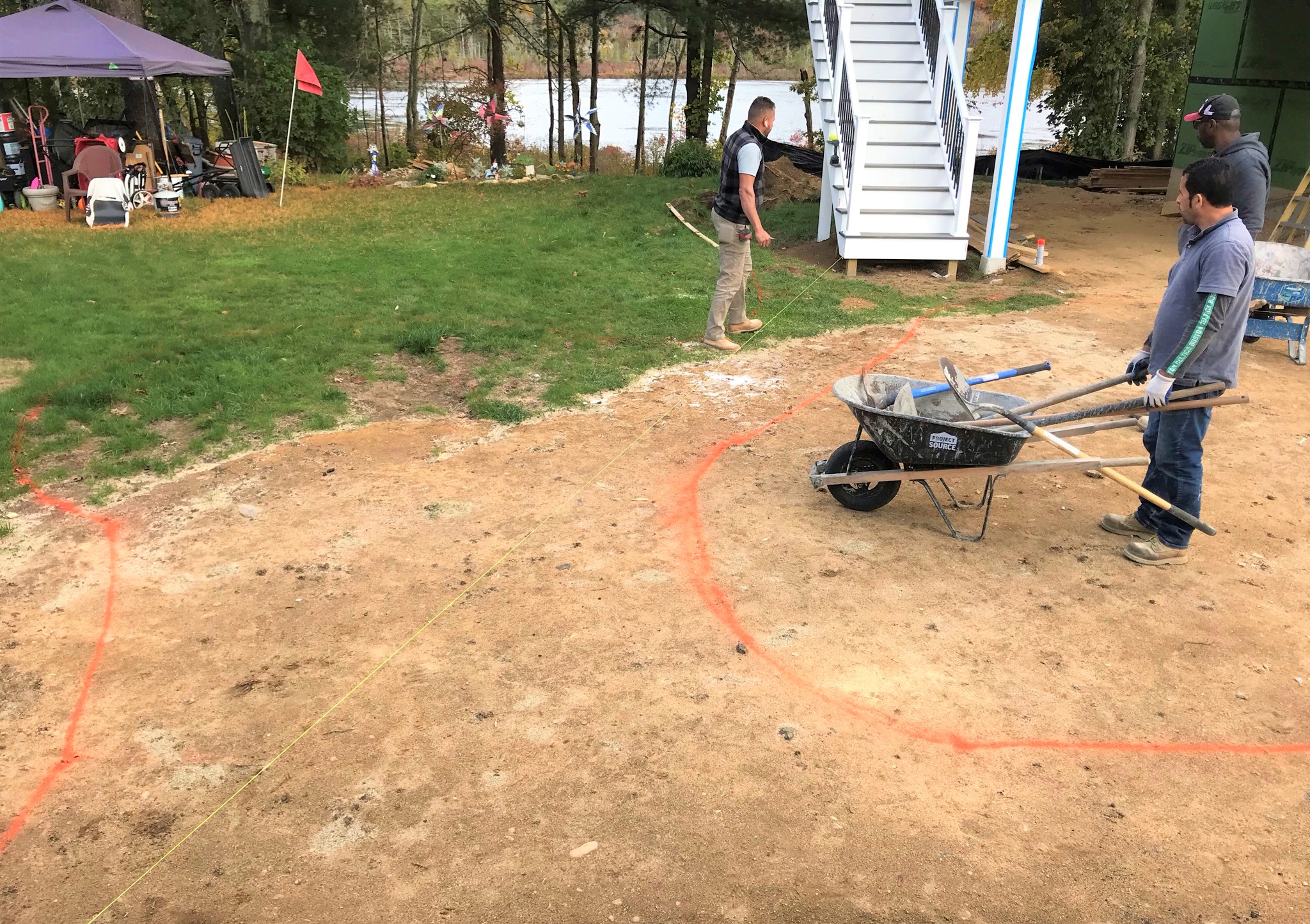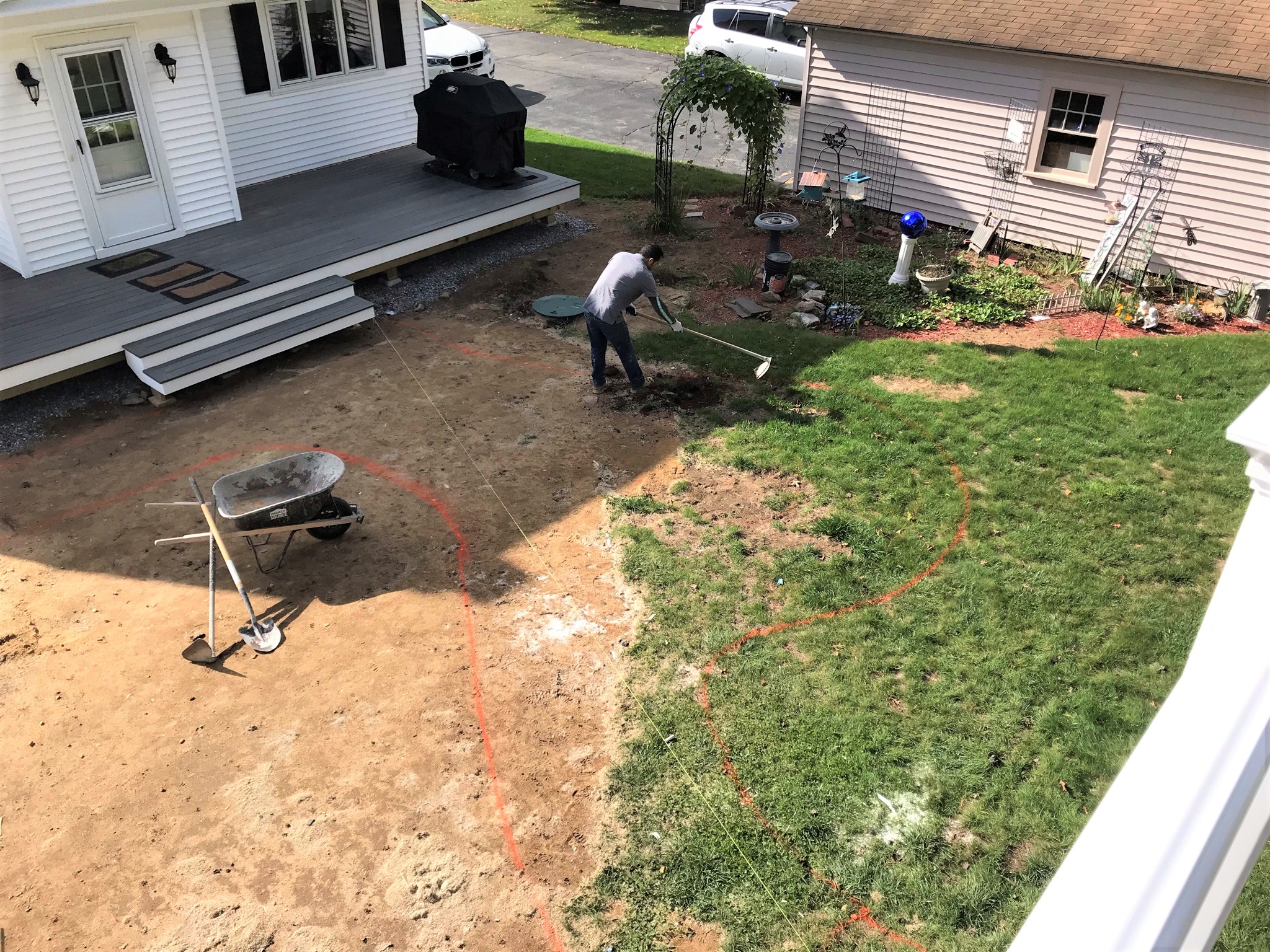 Week 12 saw work being done on both decks, and well as connection to the National Grid gas line. We also had Evandro Rodrigues from E&V Masonry (who works with Ready Installs) come out to lay out the paving stone areas and the proposed gas fire pit. They also placed the concrete floor in last week.