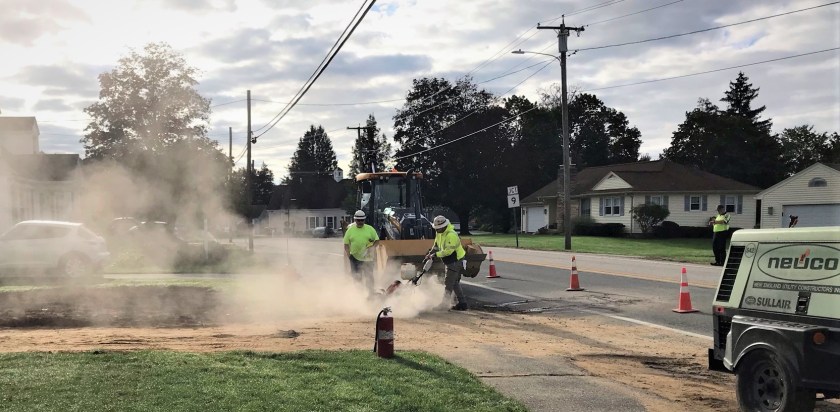National Grid begins cutting the street and sidewalk to excavate for the new gas line.Cut that asphalt!There’s a gas main here somewhere……found it!
