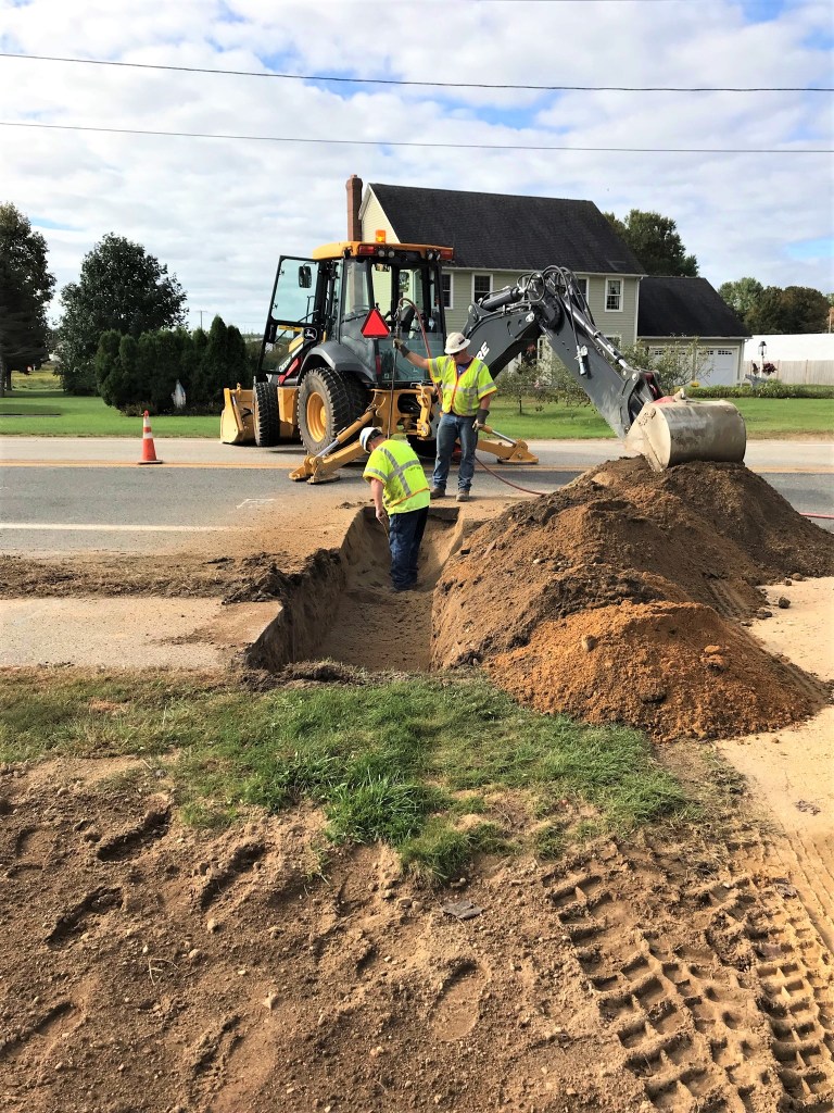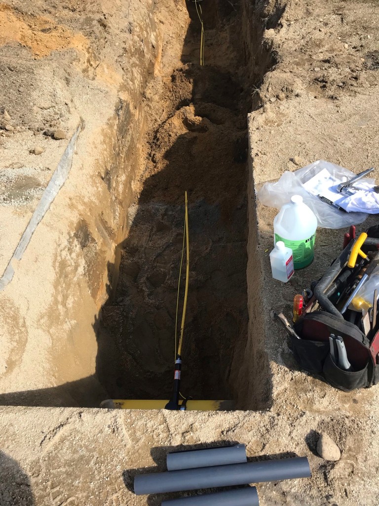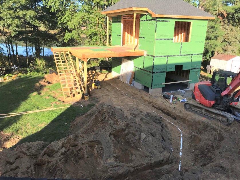 Because of the many rain days, Andy Cormier arranged to get help to finish off the septic line installation.