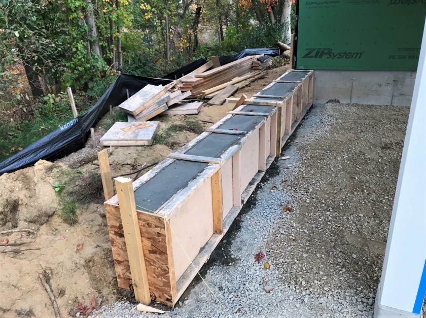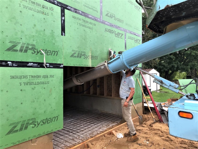 On the 24th, it was time to place the concrete floor in the garage. I say “place” and not “pour” because that was drilled into me in the US Army Corps of Engineers as the appropriate terminology – and that stuck.