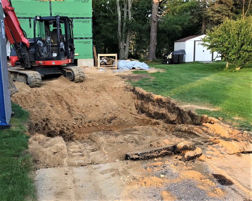 When we returned home, there was a lot of dirt moved around. It turned out that the soil under the driveway had the same layering issue that I found in my dry well excavation – so a lot had to go, and be replaced with clean fill.