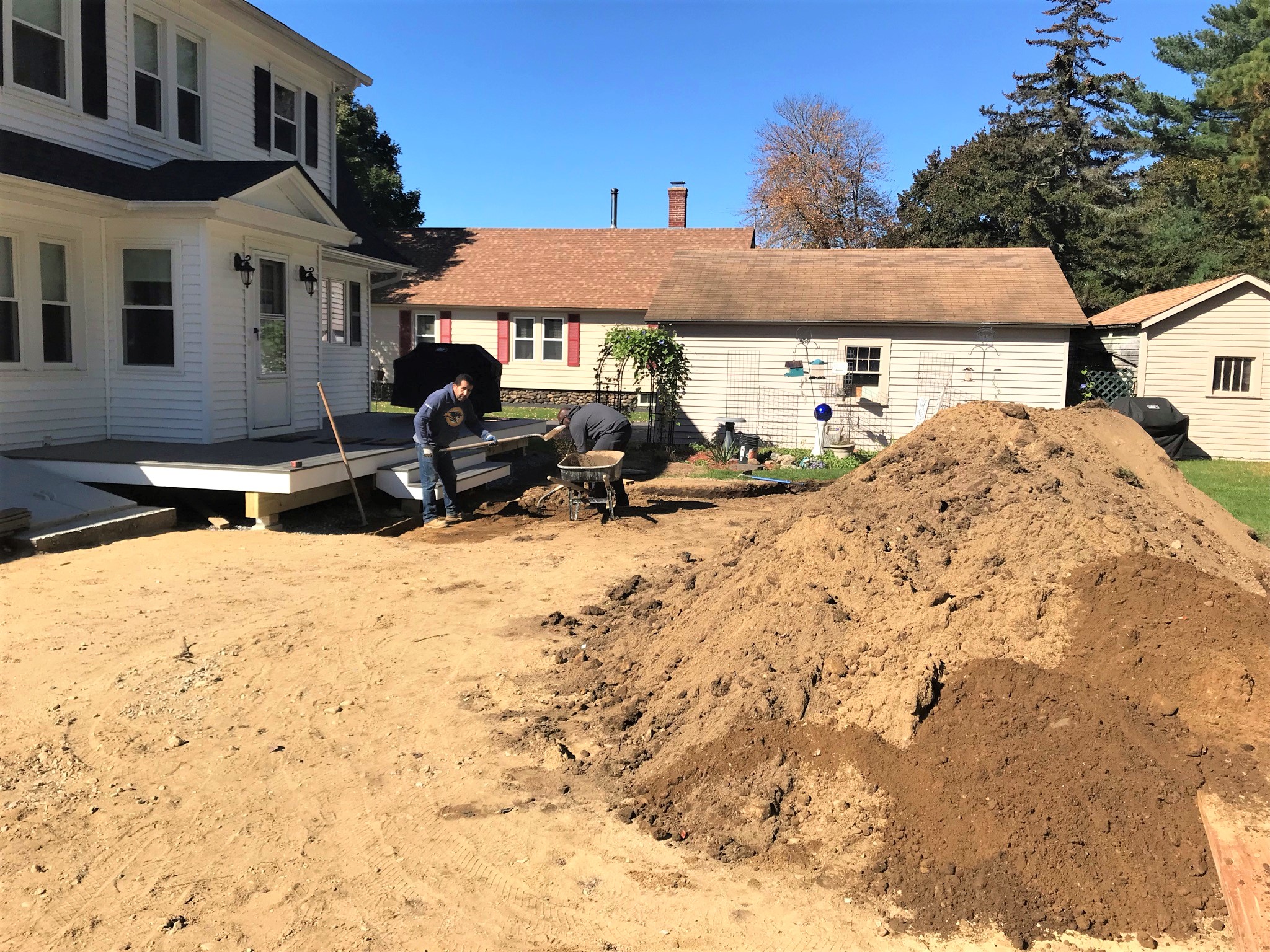 The work shifted this week (October 17-23) to the patio and fire pit – and that meant Evandro and his crew were front and center as Ready Installs awaits window and door deliveries – all delayed by COVID.