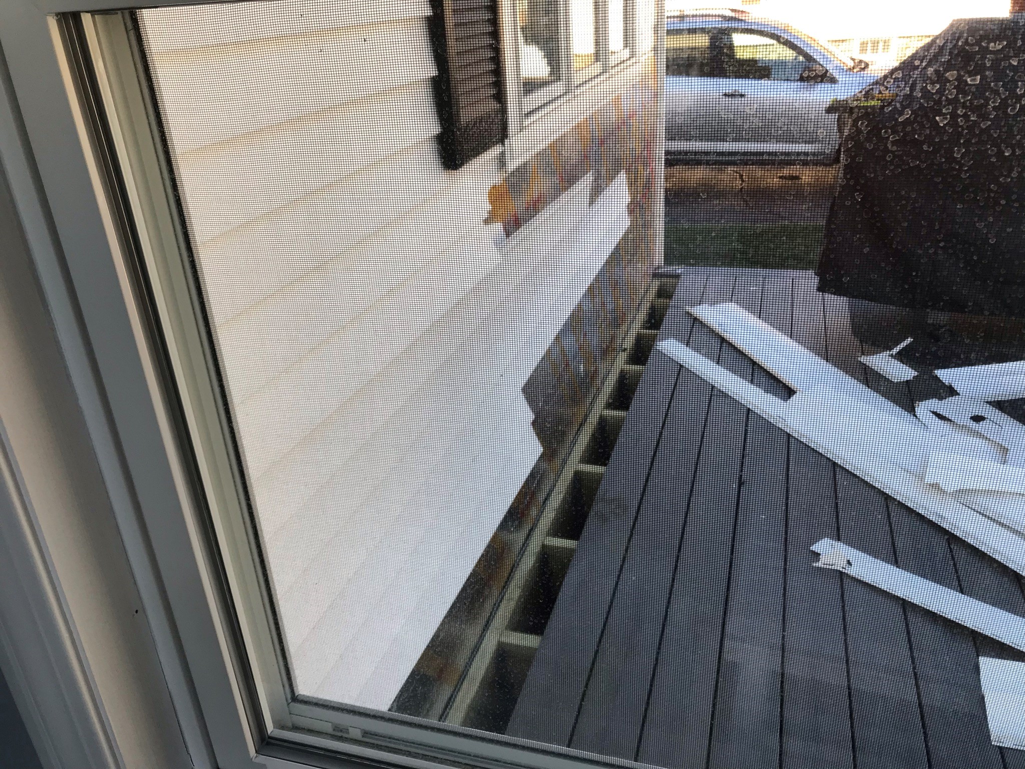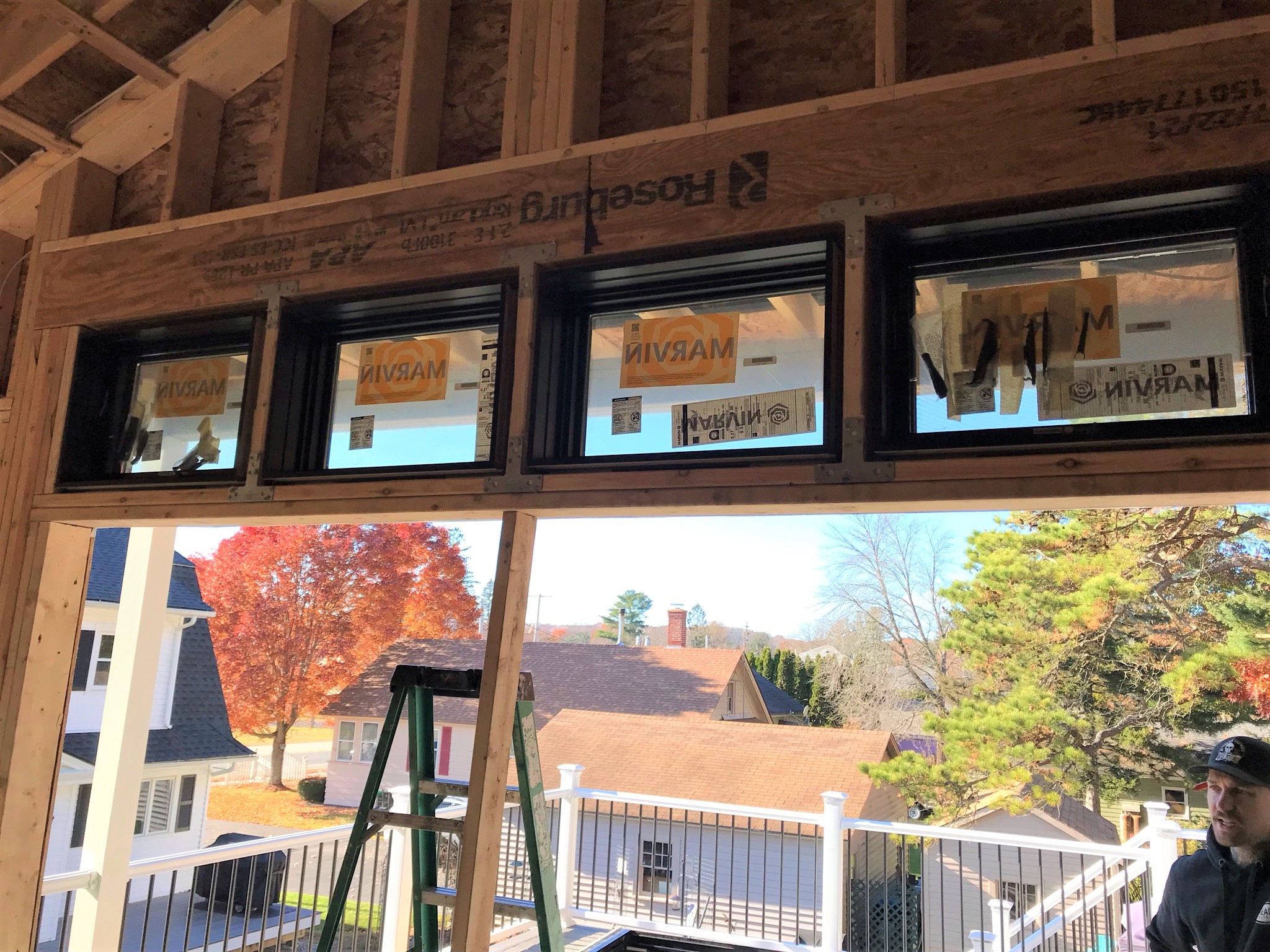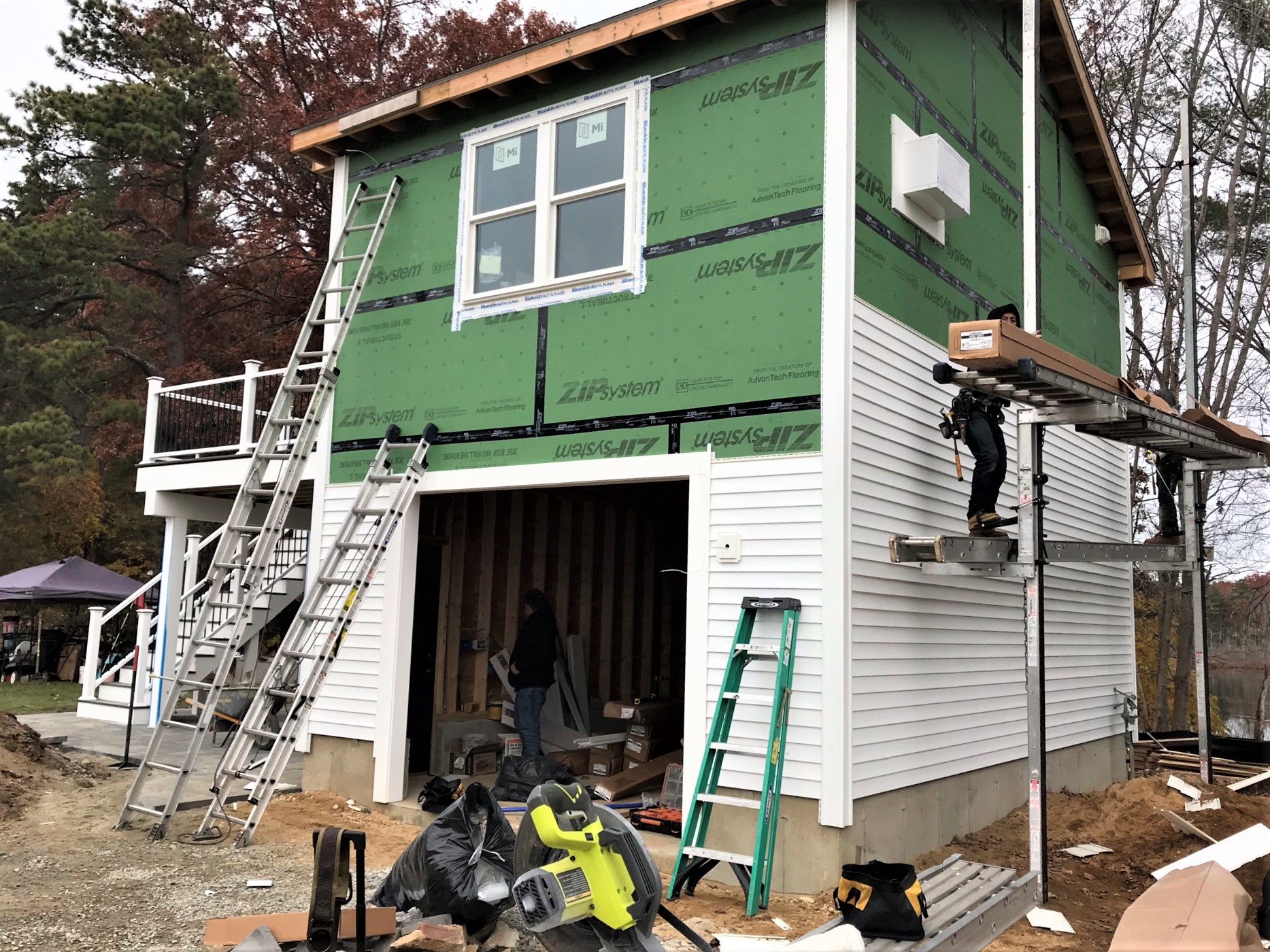 Siding work continuing by the deck door.