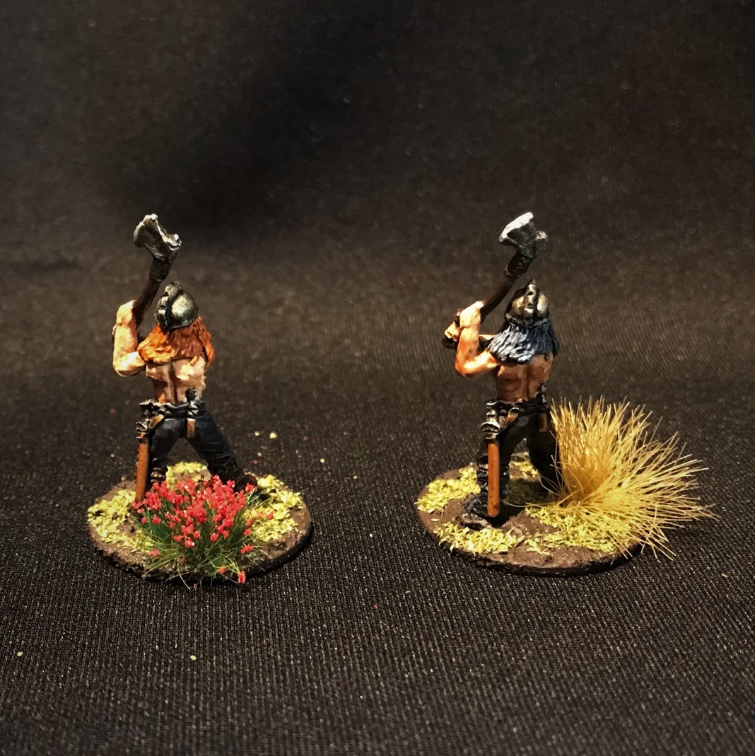The figures had substantial mold lines, which was common back then. That issue was easily remedied. Their axe shafts were also a bit bendy (common as well) – and I gave them all a light coat of Gorilla Glue – to stiffen up the shafts (insert bad joke here).