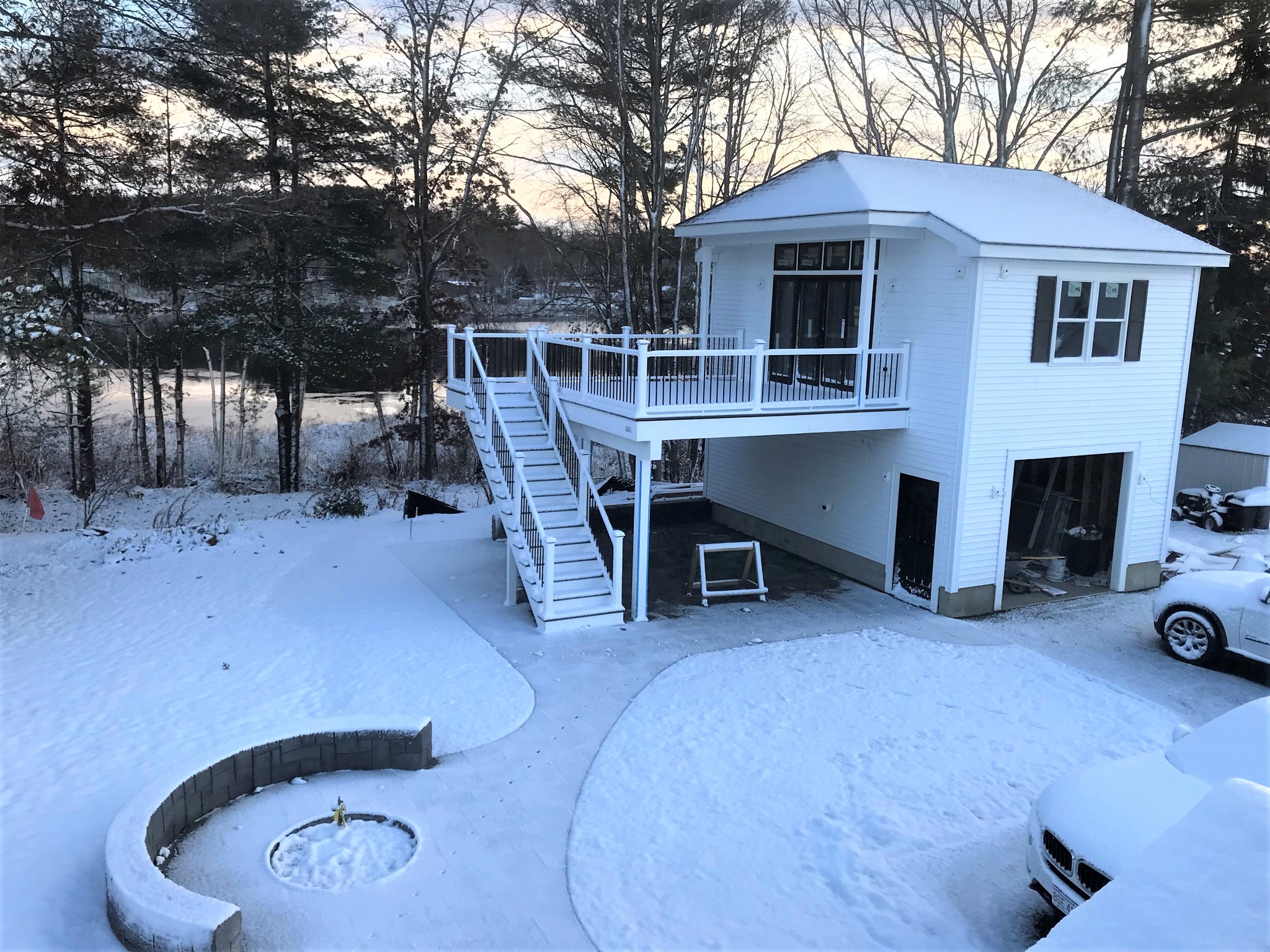 Shaping up nicely and we even are parked in the driveway – for now anyways. Yes, that pond is freezing up too.