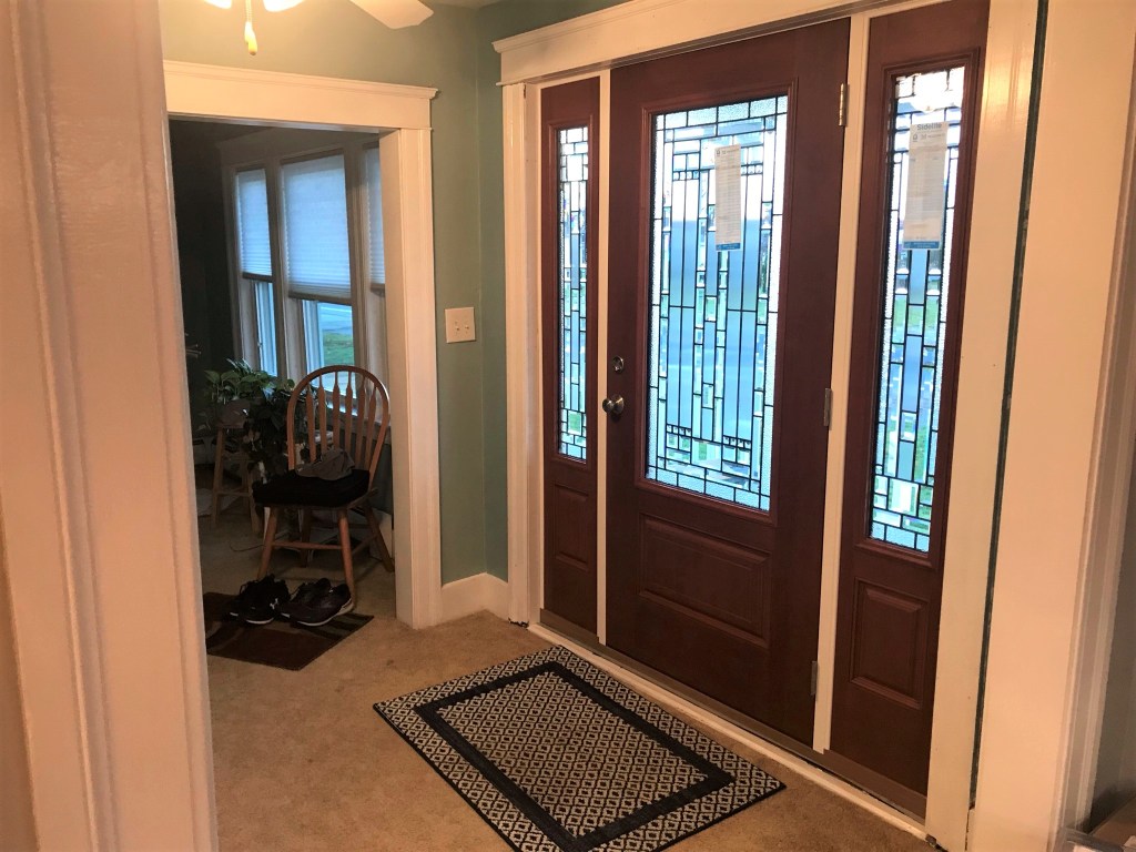 The weather warmed up significantly on the 18th, which made it an ideal day to replace our front door. It had been previously ordered to be installed in the summer, but the retailer screwed up and sent a door with no stain on it. That was sent back, and finally the new one arrived.