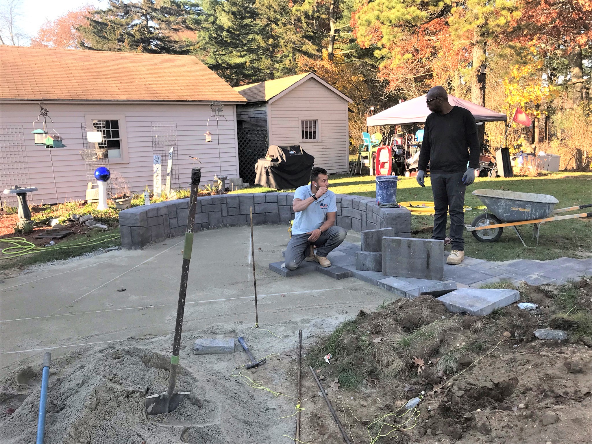 Evandro progressed on paving the fire pit.
