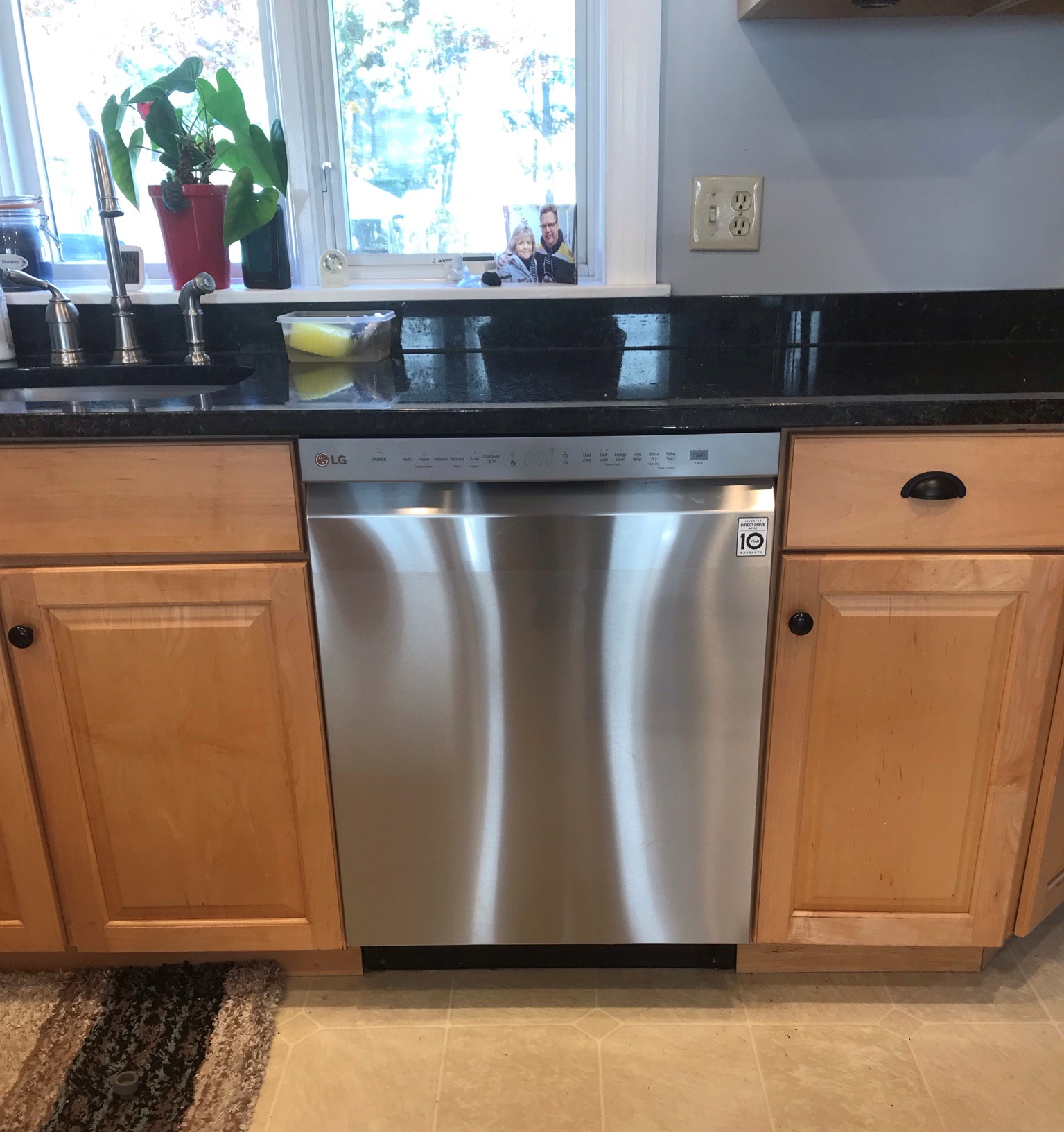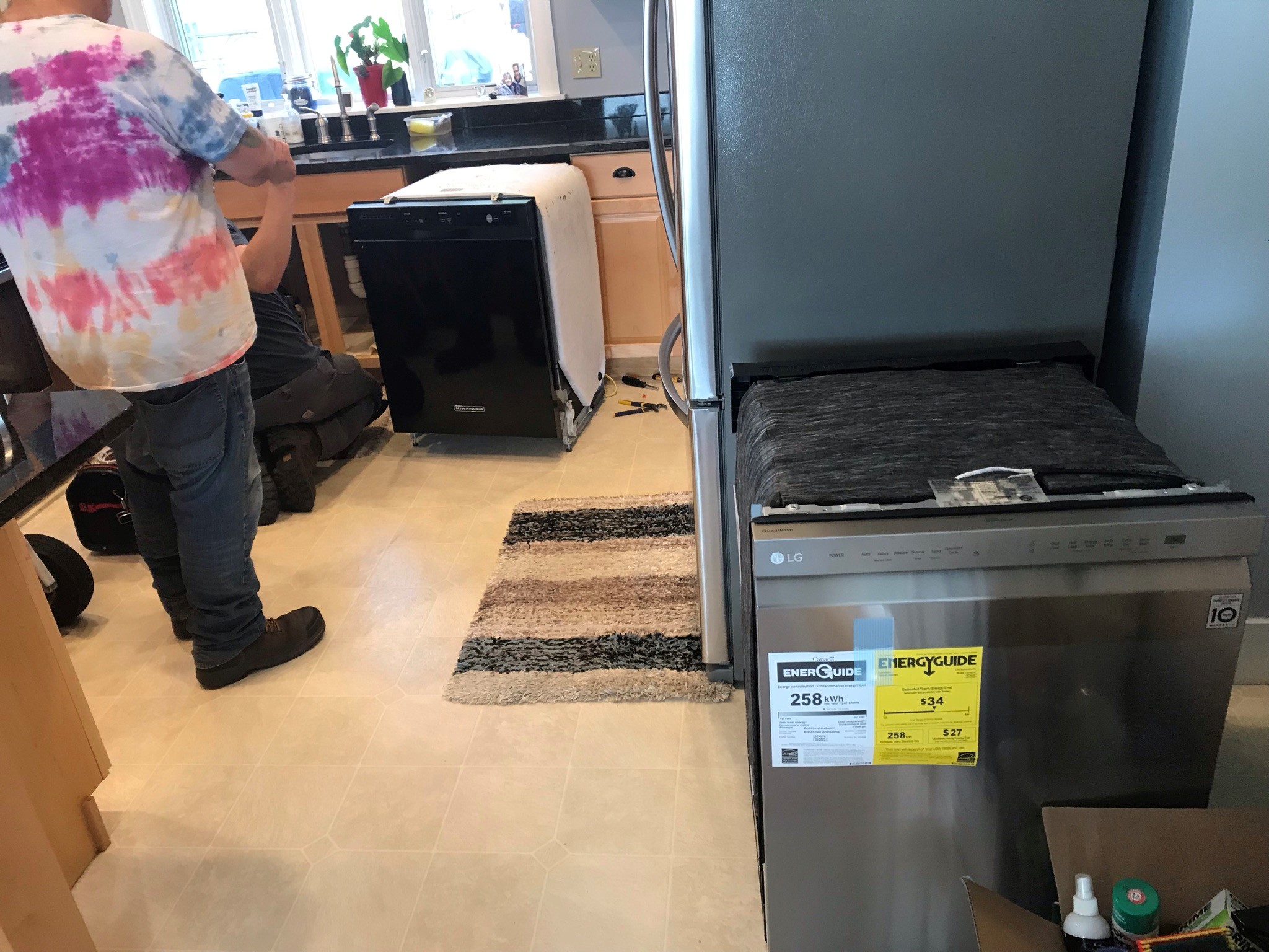 Out with the old……in with the new.New dishwasher installation happening in the midst of the front door installation.