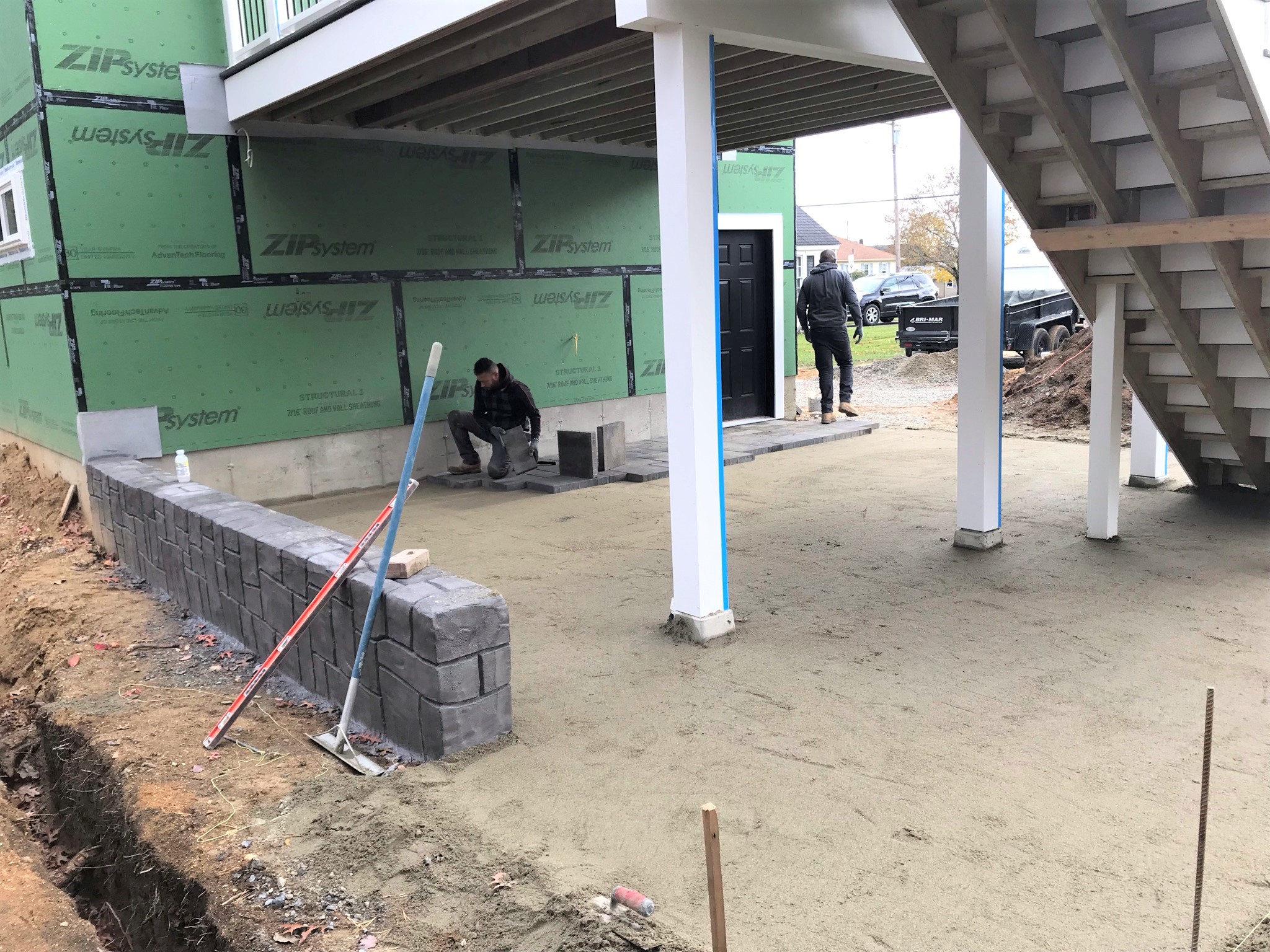 The patio made significant progress on the 15th getting under the stairs.