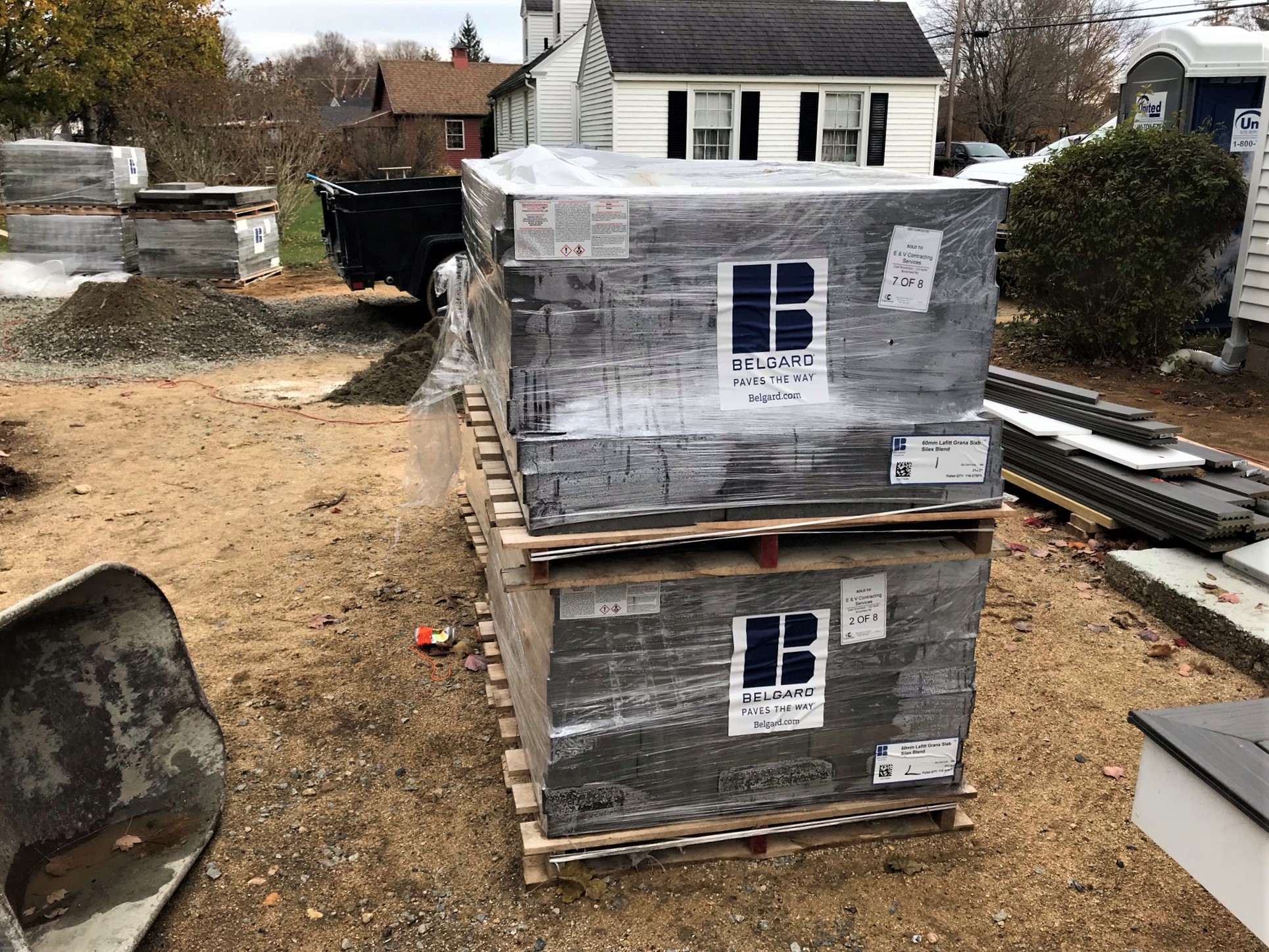 Then, a minor supply-chain-related crisis. Evandro (our masonry guy) found out that the paving stones that we wanted were not available. We would need to scramble. I told Evandro that for this project I was function (what works), and my wife Lynn was form (i.e. she picks colors and similar choices – what looks good). At the time Lynn was at work, and Evandro had a book of stone examples but no physical samples. As it’s a major decision, we asked to see some, and Evandro came back later in the evening (after dark) with probably a dozen full-size paving stones as samples (each weighing maybe 30 pounds). We thought the samples would be, well, small! Anyways, by flashlight we were able to make a choice so Evandro could keep going. The choices are less bluish, but still a nice mixed gray hue.