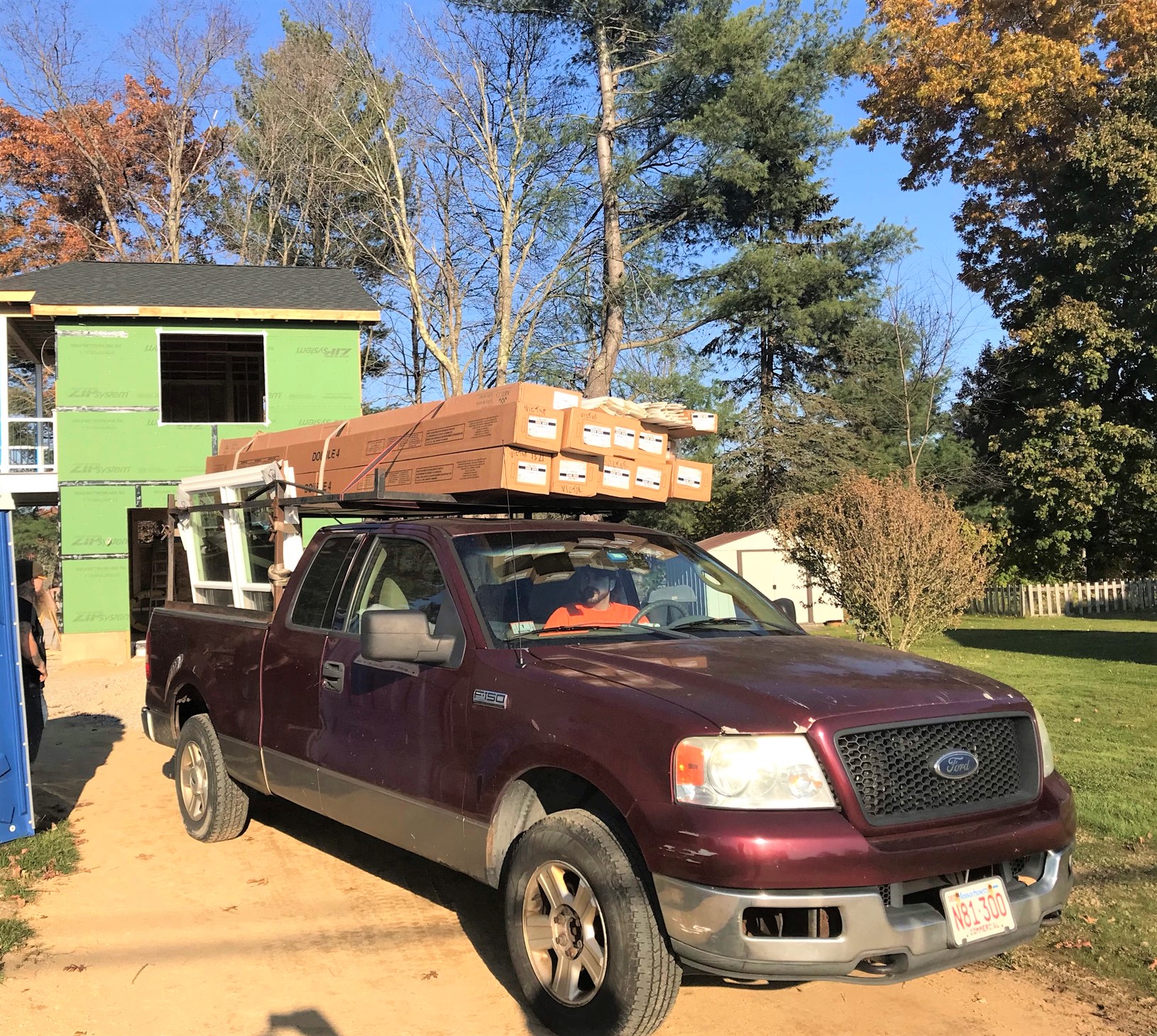 The morning of the 17th there was a heavy frost – yes, my roof is not normally white. Jonny Victor was early and got going on the siding installation.