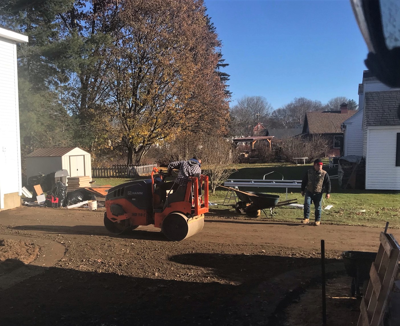 This was a part of the construction project that I really wanted to see close up – Bill Keyes Asphalt doing the paving! However, I was in no shape physically to do much more than poke my head out of the door or through a window to take pictures.