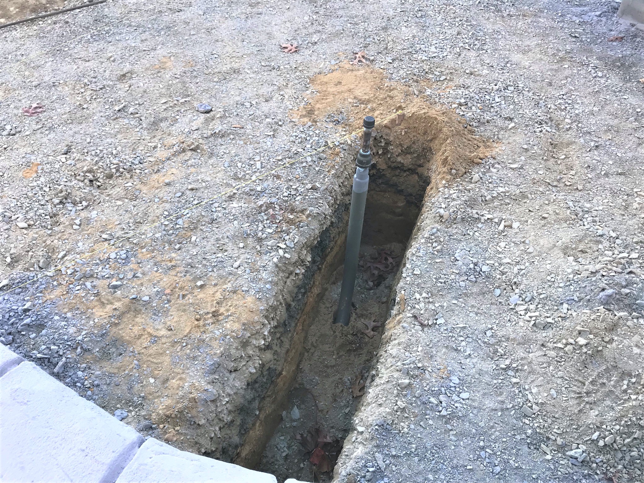 Gas line in trenchGas Line hookup in fire pitGas line installation.The transom windows and door frame.