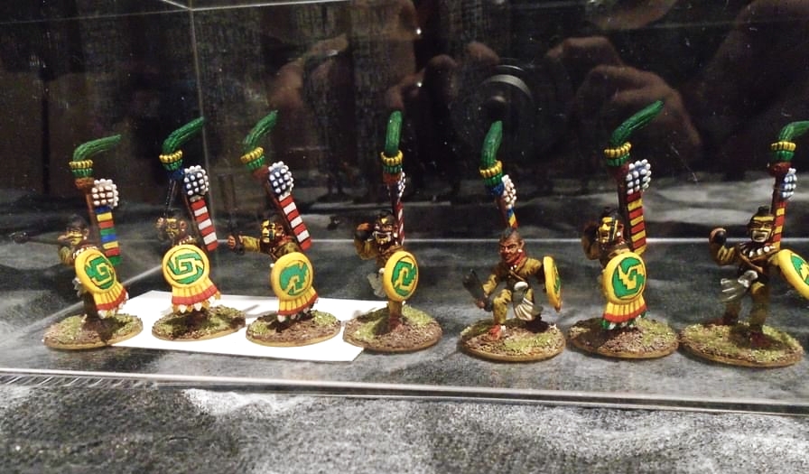 Among the Elite Aztec Elements, the Cuachiqueh (Shorn Ones) hit Conquistador Element C1 first, while the Jaguar Warriors hit the far end of Conquistador Element C3. Casualties on both sides were immediate.