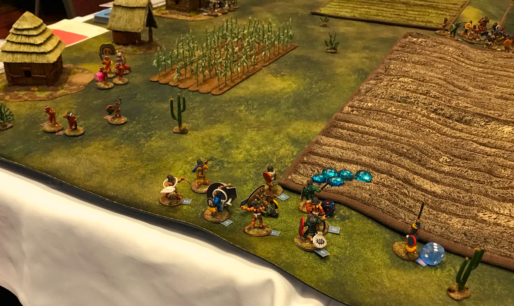 This post covers the fourth and final game that I ran at TotalCon 36 in Marlboro, Massachusetts. The game is a scenario for The Battle of Otumba, which happened on July 7, 1520. I ran the game on the morning and early afternoon of Sunday, February 27th, 2022. As with my two previous Aztec games the rules that I used were Feudal Patrol™ with my Spanish Conquest rules supplement Civilizations Collide.