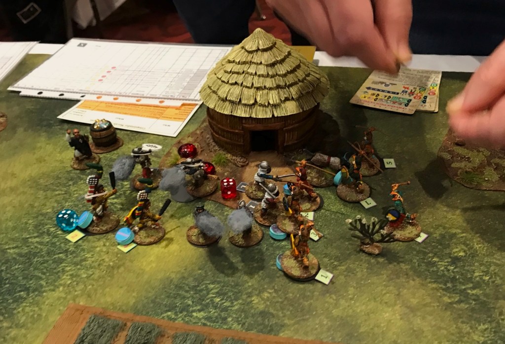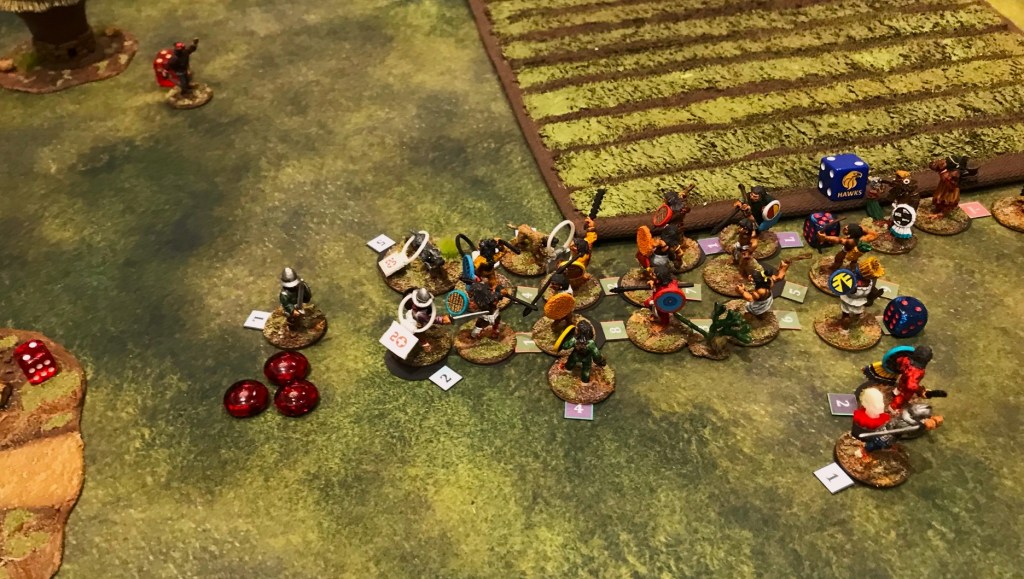 Soon after, the Conquistador cavalry got a second activation. They made several attacks against members of the retinue (all devastating). However, all eyes were fixed as one cavalryman managed a non-impetus attack on Matlatzincátzin…and despite the odds MISSED HIM!