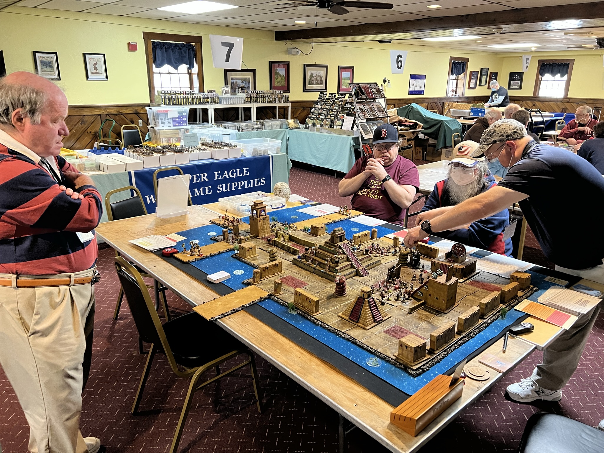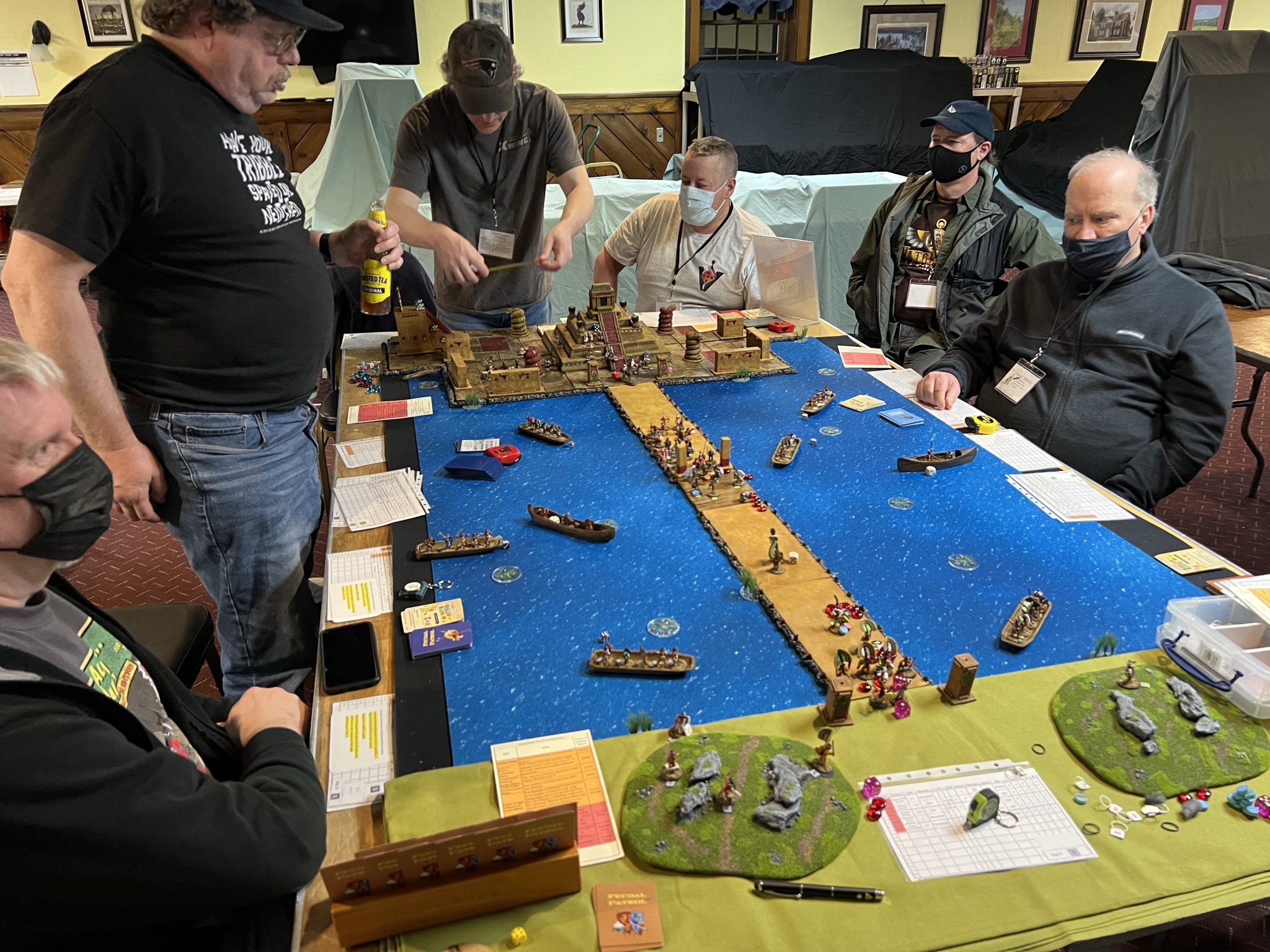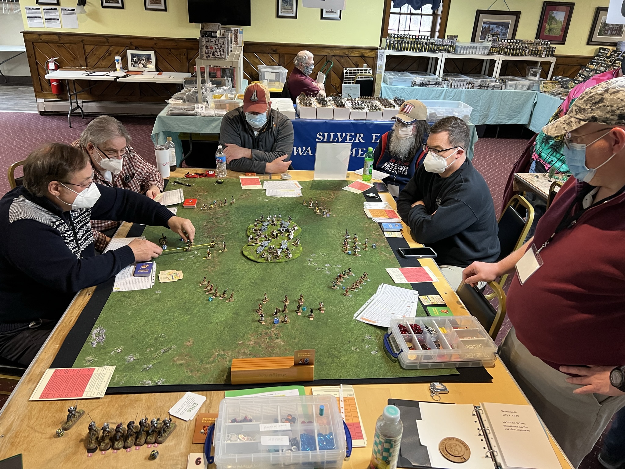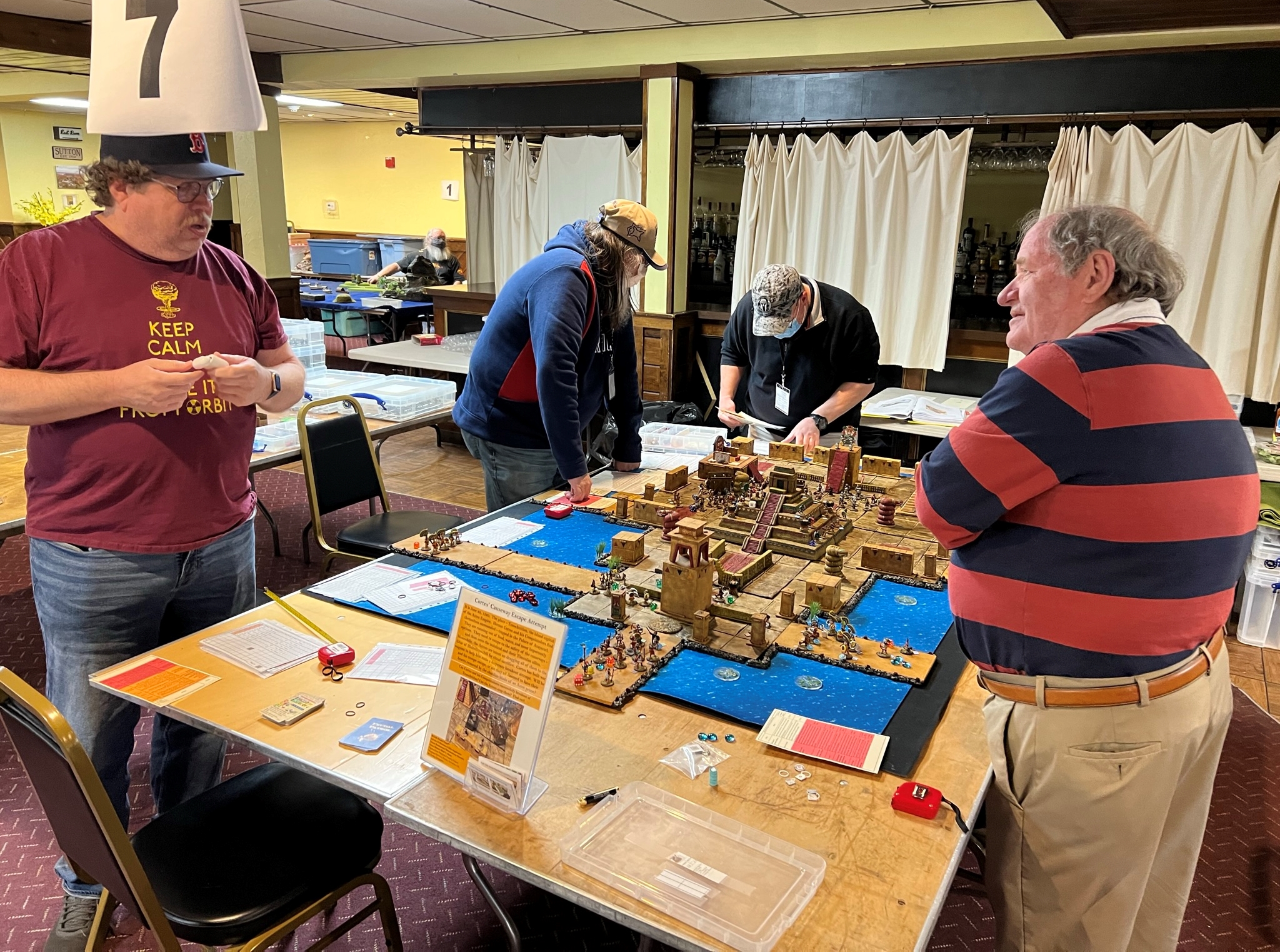 On Friday Morning, I had a full table for my “Surprise Aztec Raid on the Spanish Outpost” scenario. I also ran this game at HAVOC and at TOTALCON 2022. Here is the game briefing: