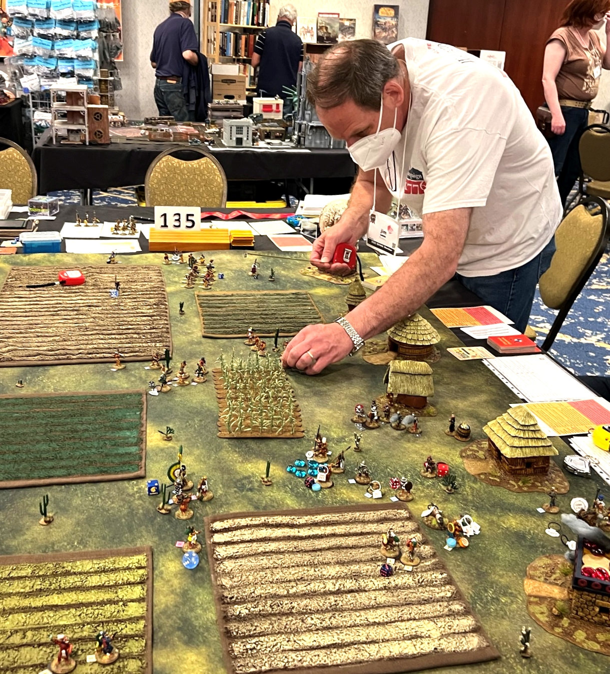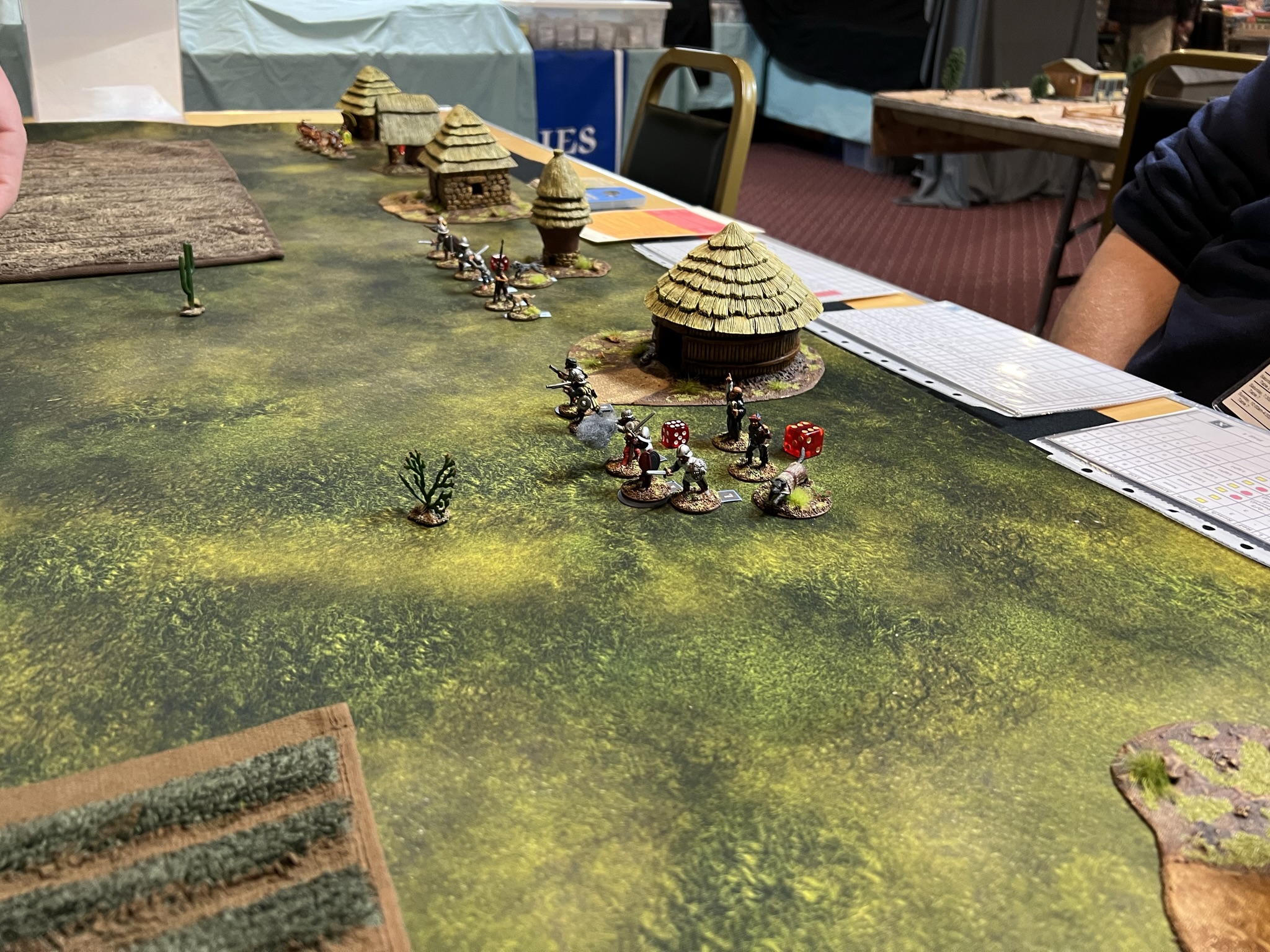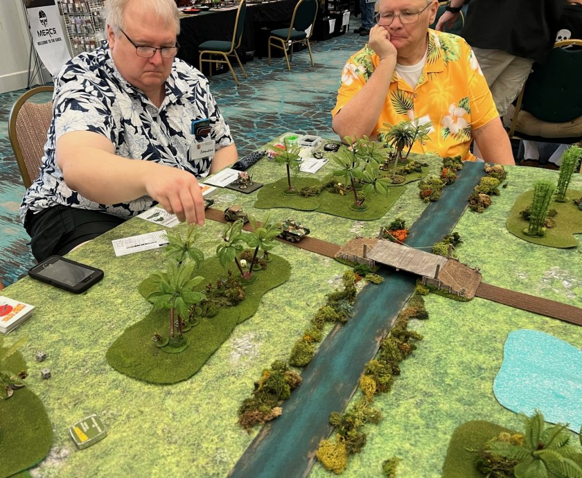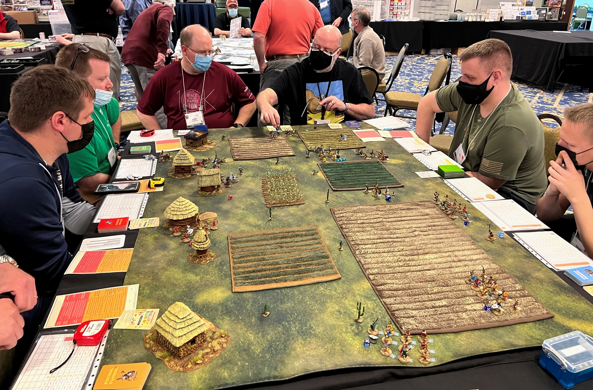 On Friday Morning, I had a full table for my “Surprise Aztec Raid on the Spanish Outpost” scenario. I also ran this game at HAVOC and at TOTALCON 2022. Here is the game briefing: