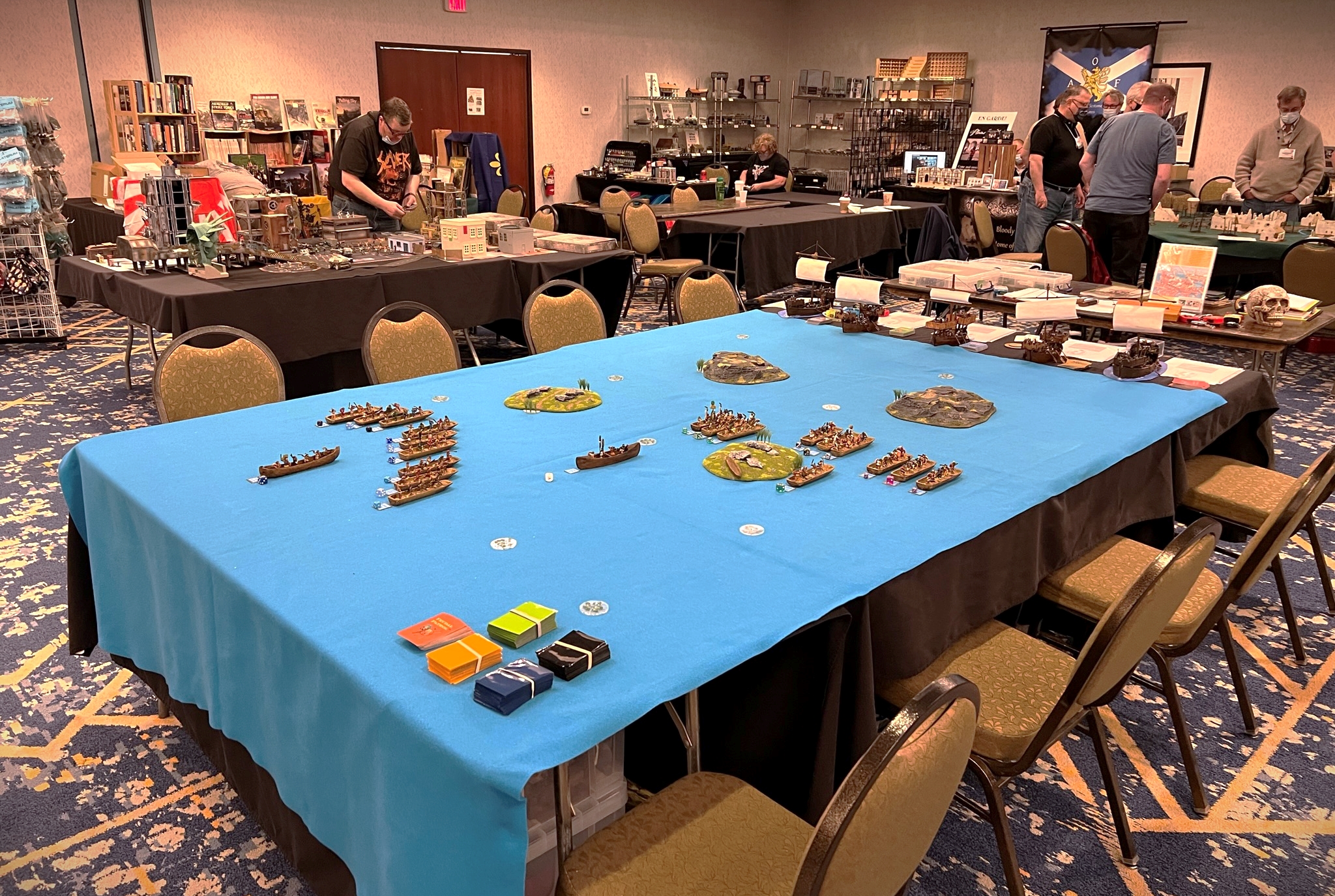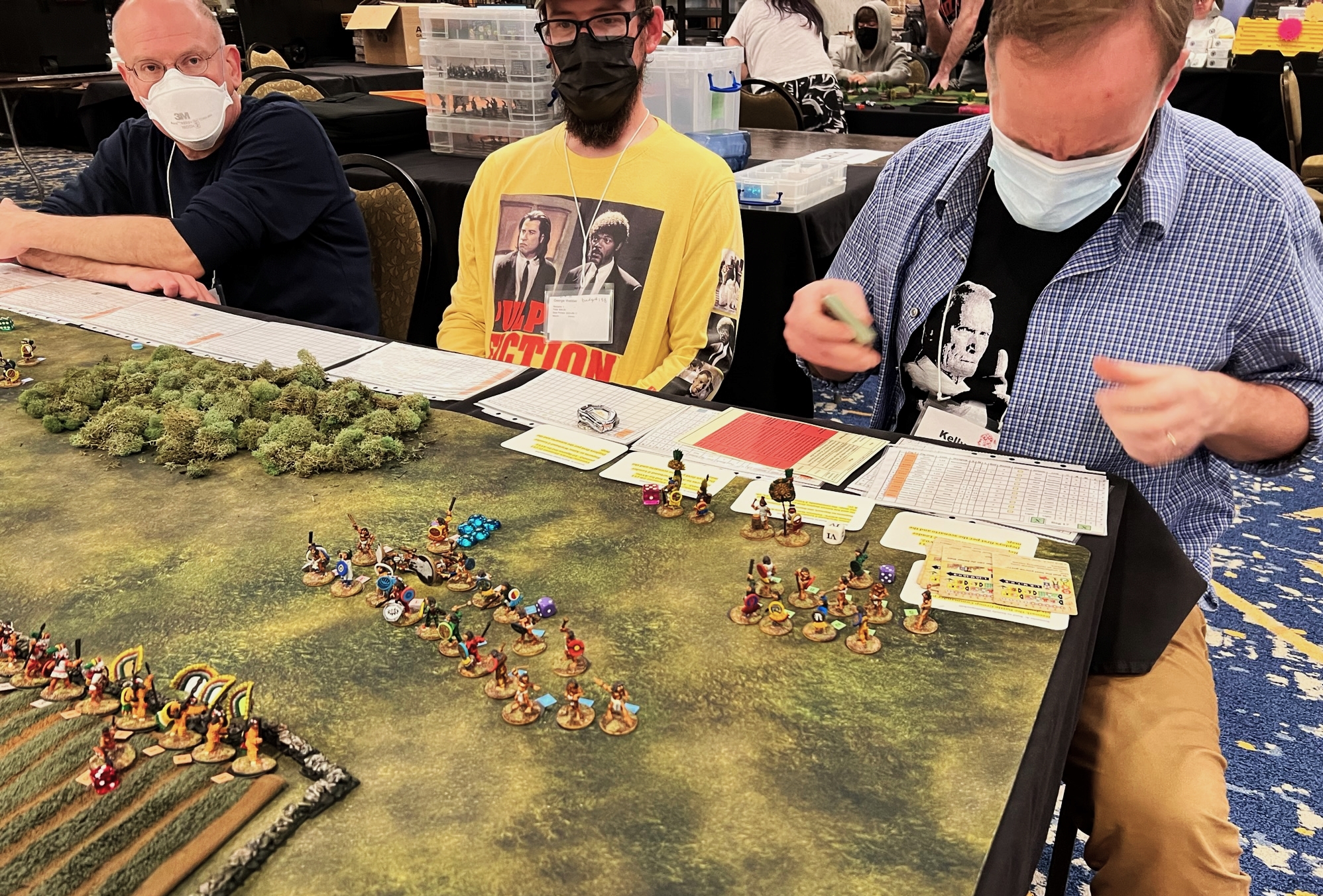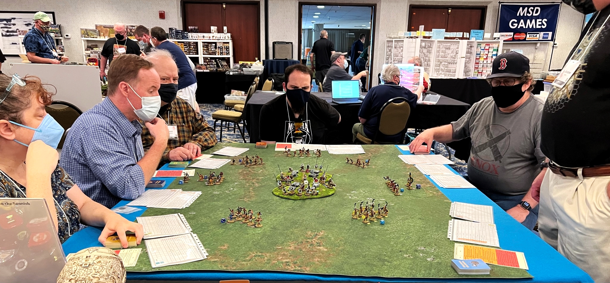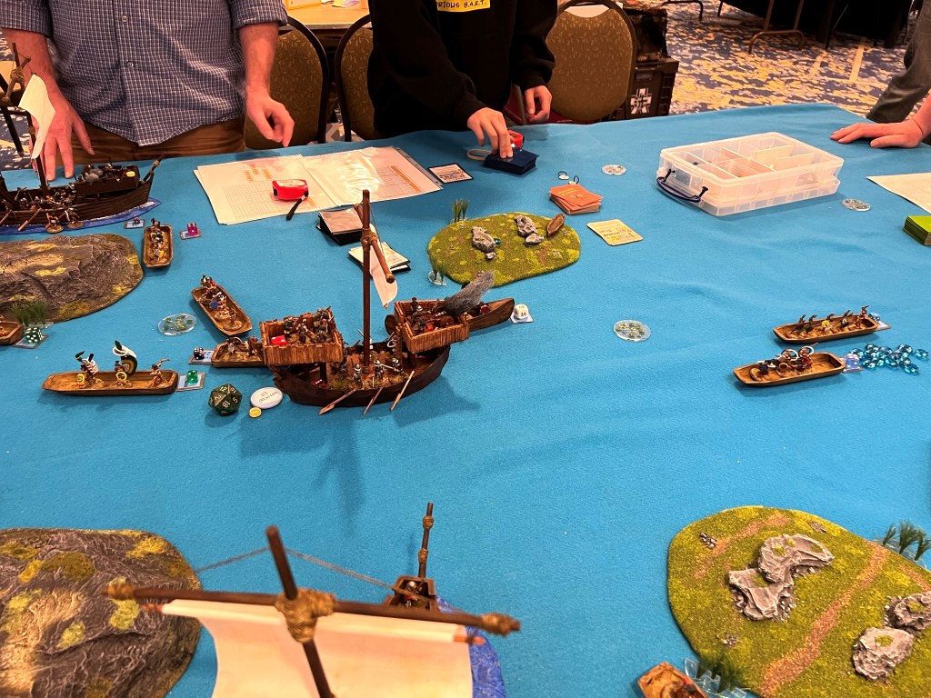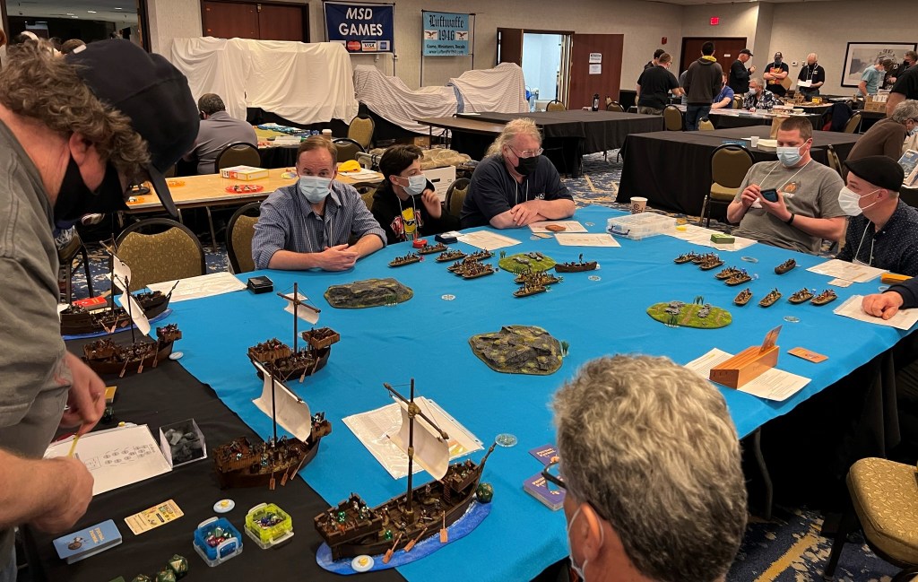 And that became 2022 – which was the return of HUZZAH! By this time I had a LOT of games that I had build for Mesoamerica and the Spanish Conquest. There were 8 four-hour game slots available at the convention – one on Thursday evening, three on Friday and Saturday, and one on Sunday morning. Of course – I had just ran 4 four-hour games at HAVOC in Massachusetts in April. So, I thought, why not push myself and run 6 Feudal PatrolTM games in four days? Hell, it would be fun my using my supplement for Civilizations Collide for so many games to a brand new audience.