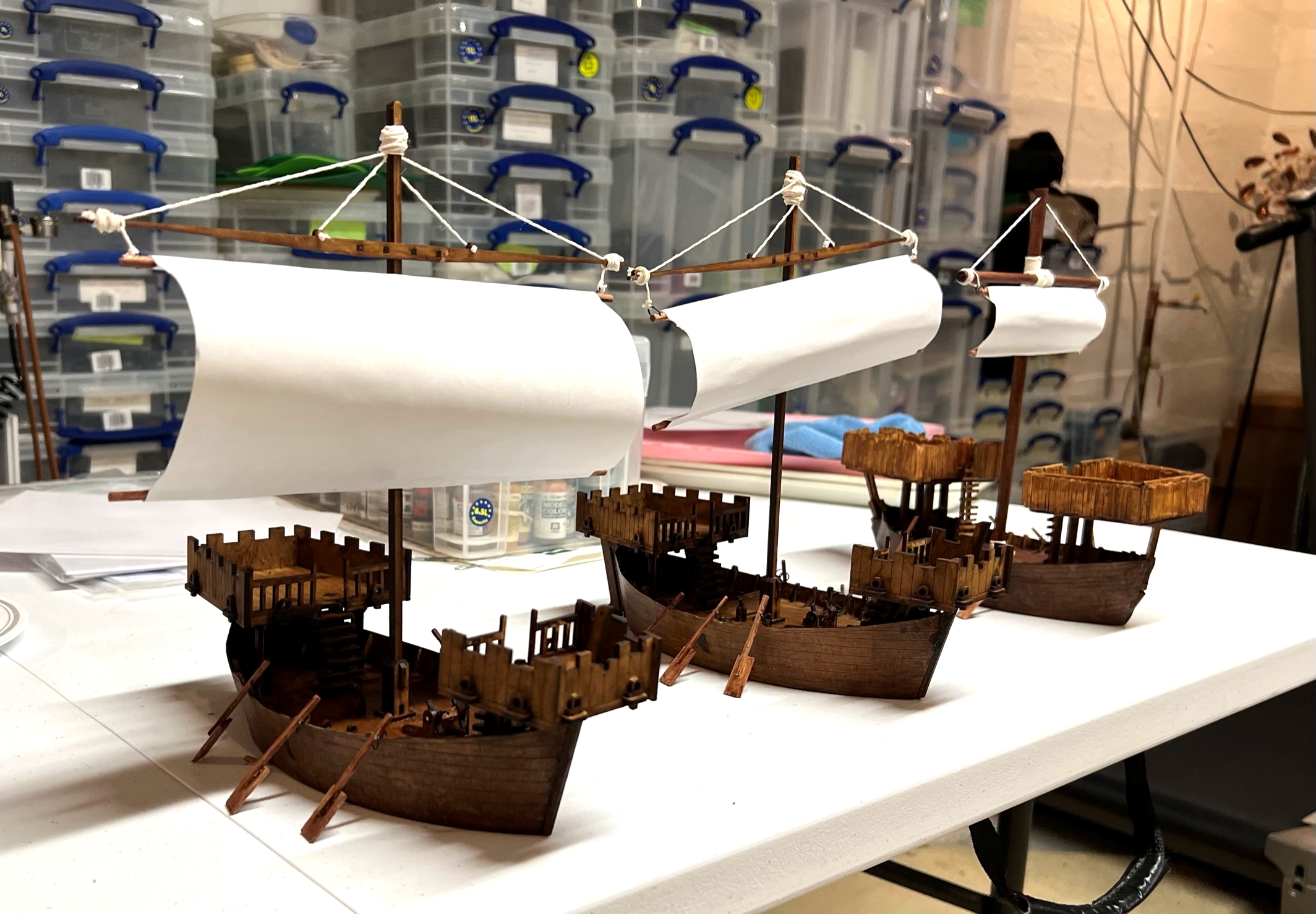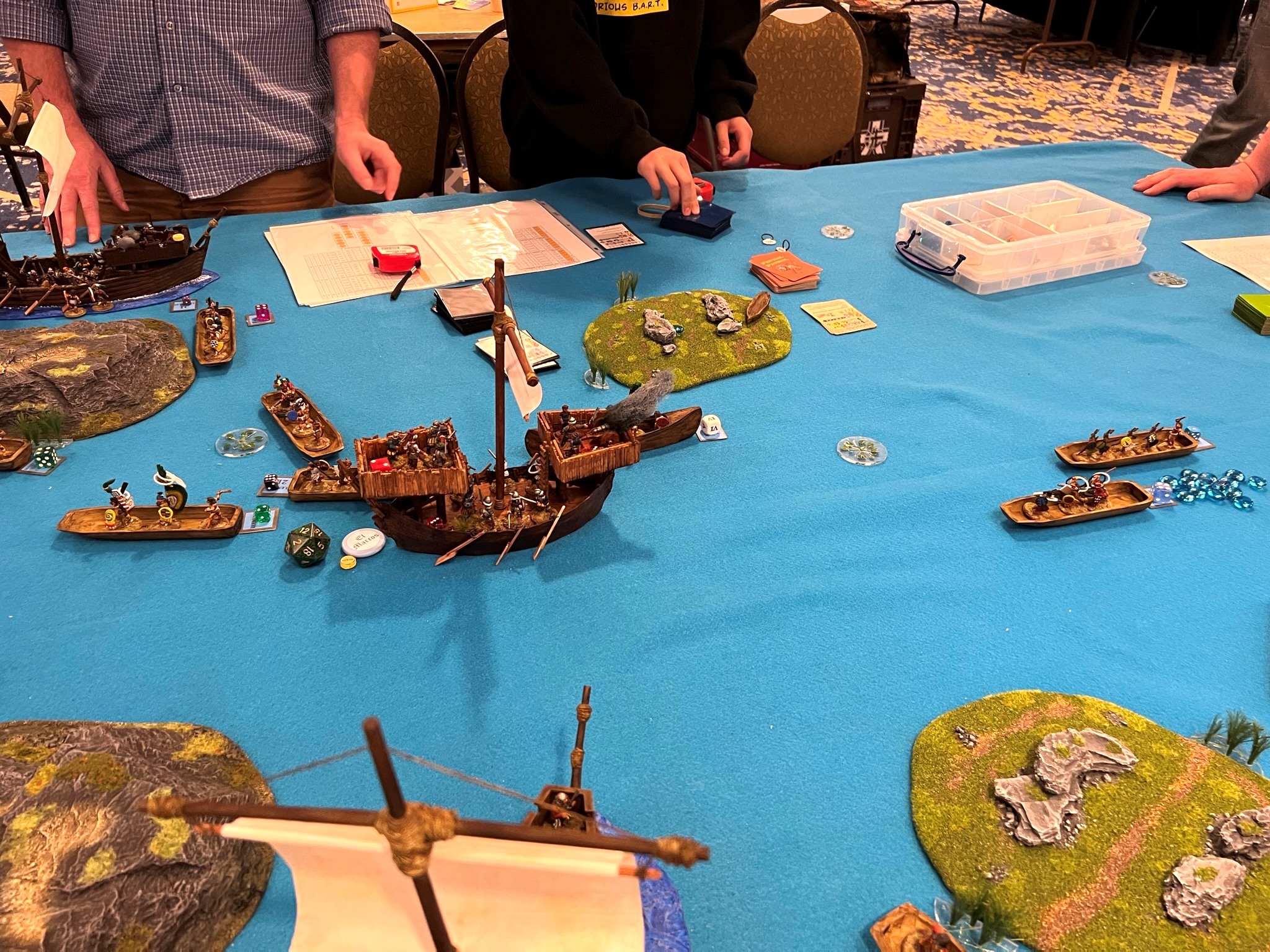 As followers of this blog know, I built a fleet of brigantines (well 5) for this game, “The Battle of Lake Texcoco”, which you can read about here and here. I was REALLY excited to roll this out -and I needed a BIG table -which MWHA did accommodate.