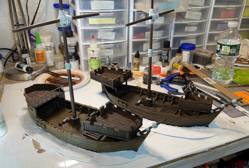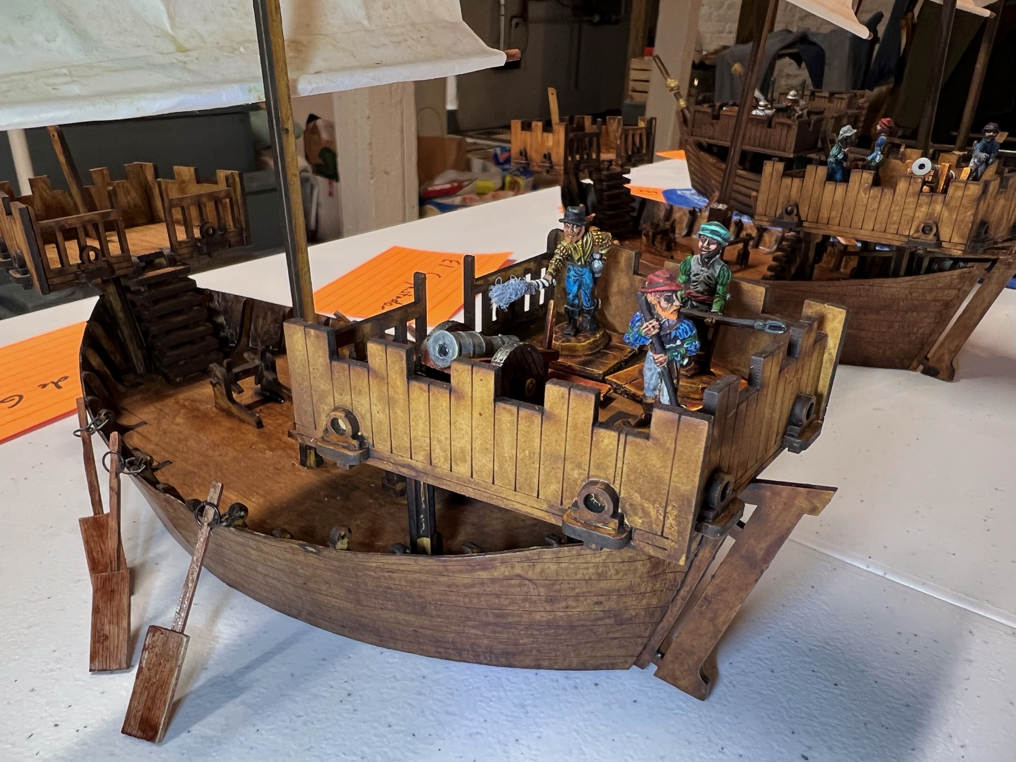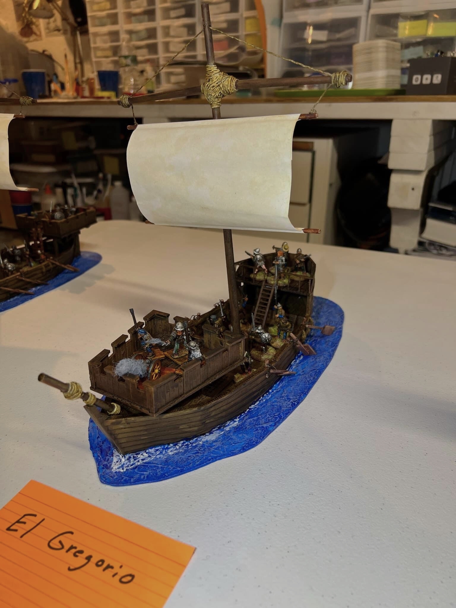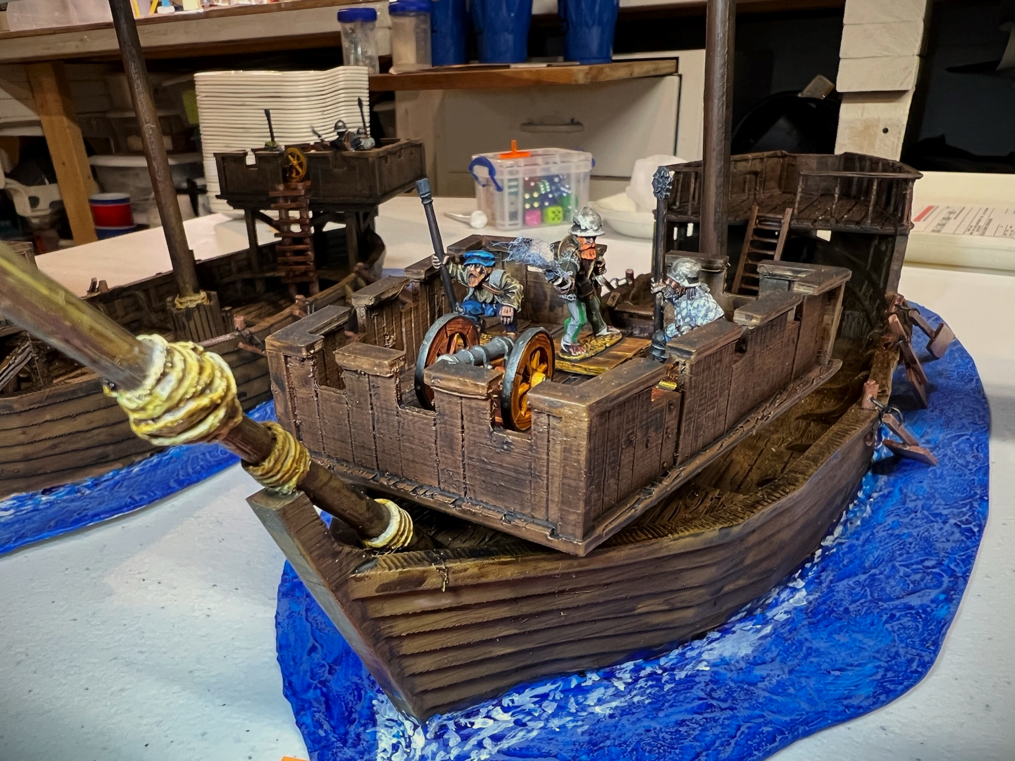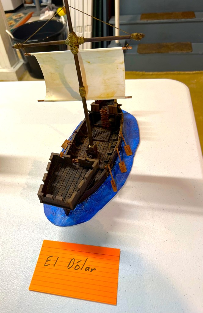 I was really thrilled at the response. What fun it was – an Aztec vs. Conquistadores naval game! It was total mayhem! How? Collisions, ramming of canoes, brigantines getting boarded, canoes getting sunk by arquebuses, ship cannons firing and wiping out whole canoe crews, Aztecs avenging their comrades by wiping out the same cannon crew, and the overall Aztec commander personally boarding a conquistador brigantine to make an assault that cost him his life and the game.
