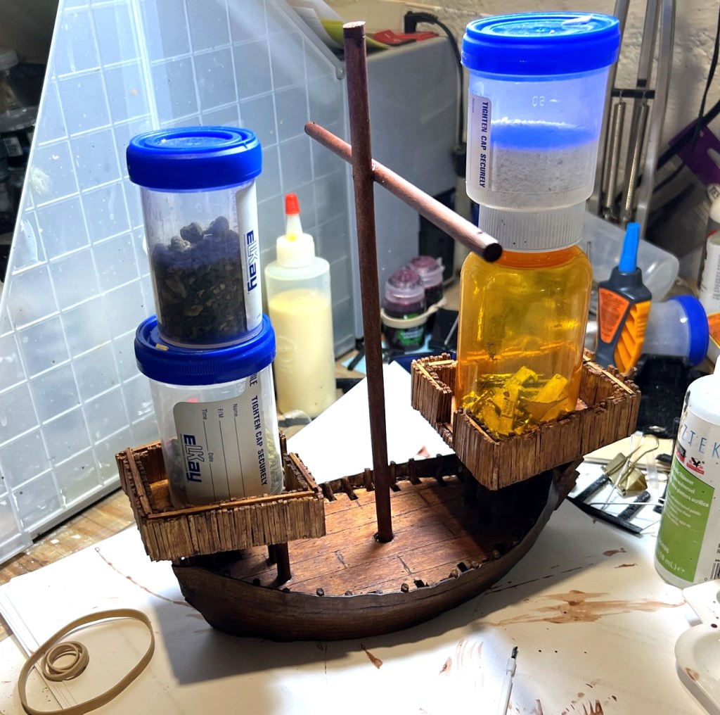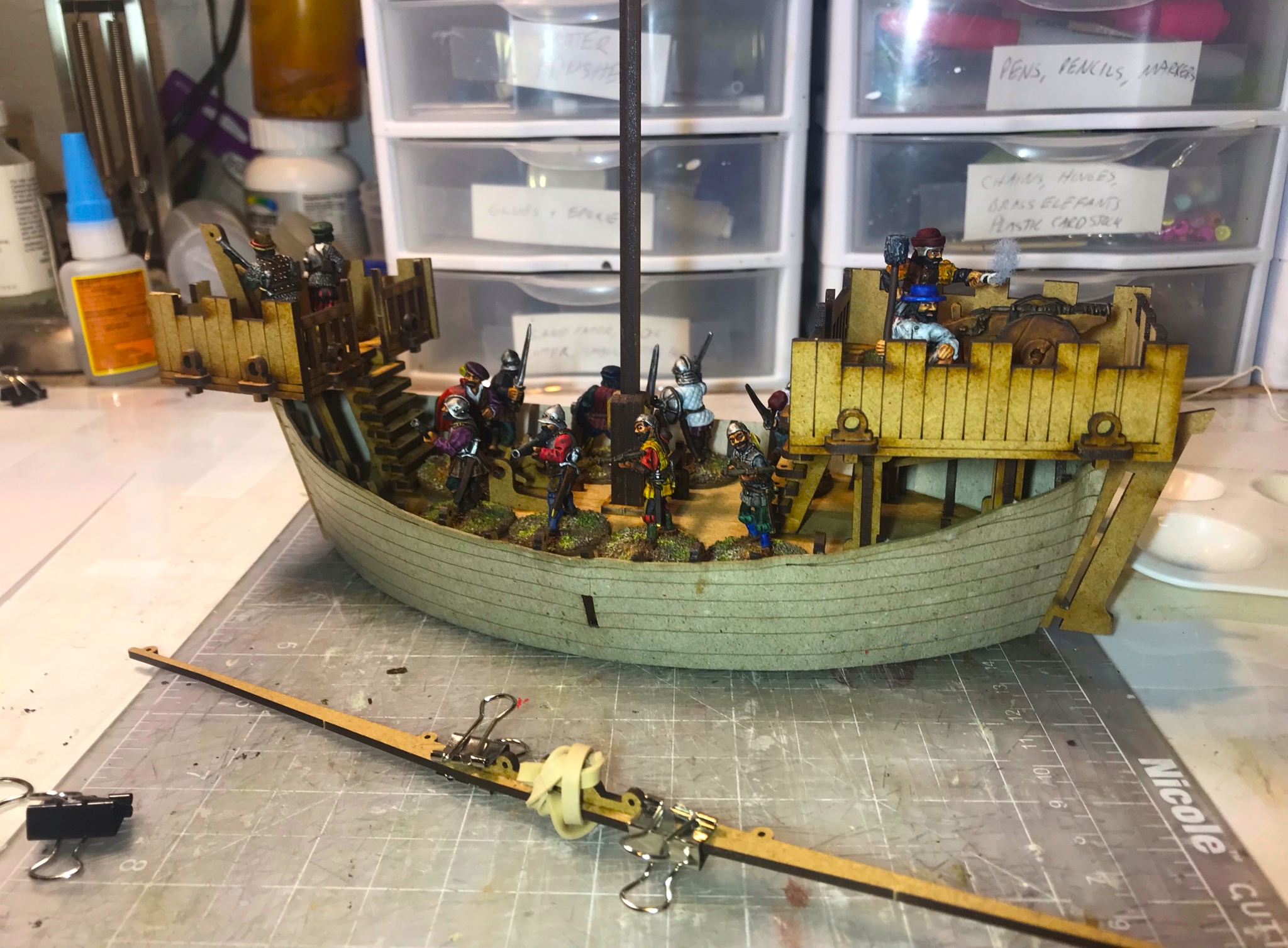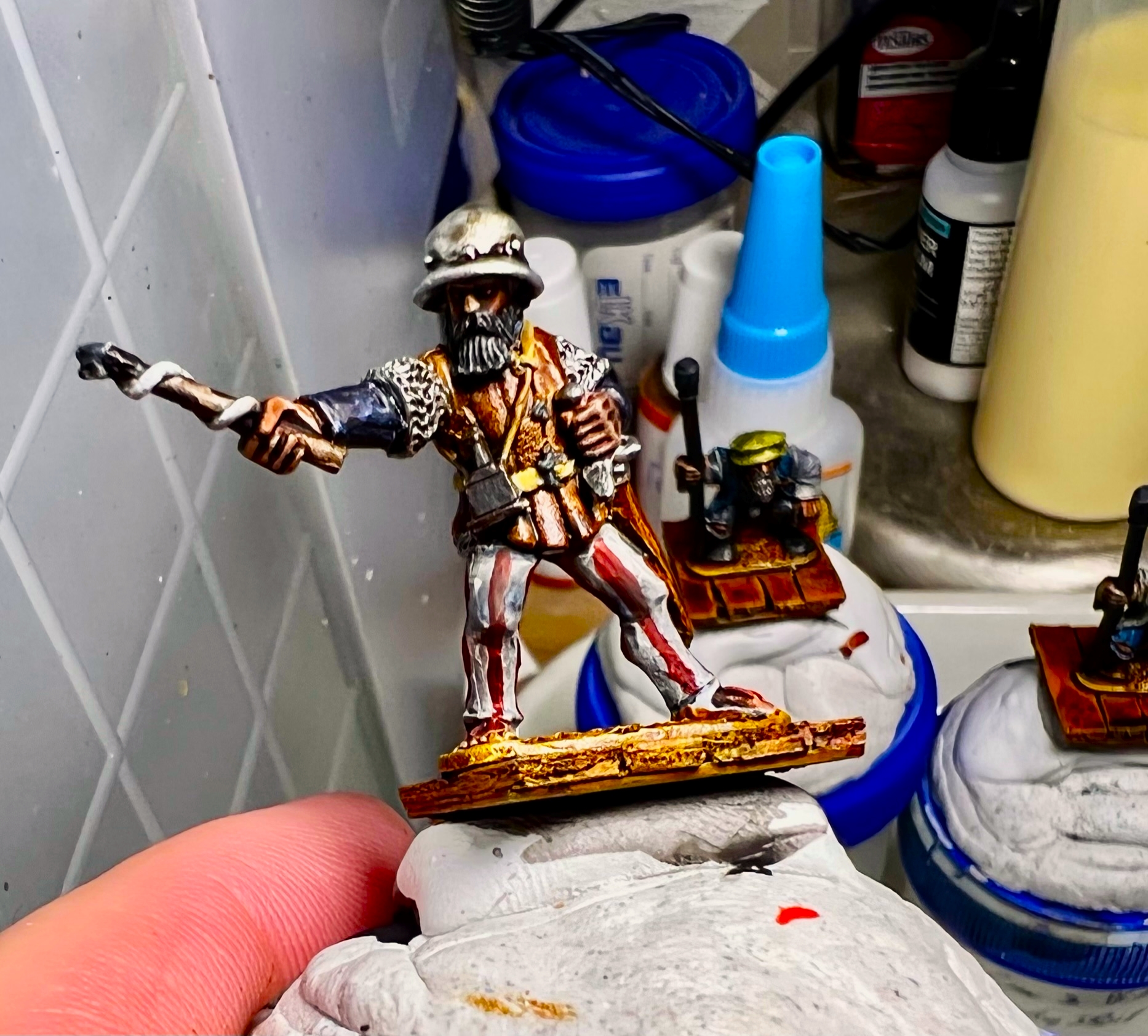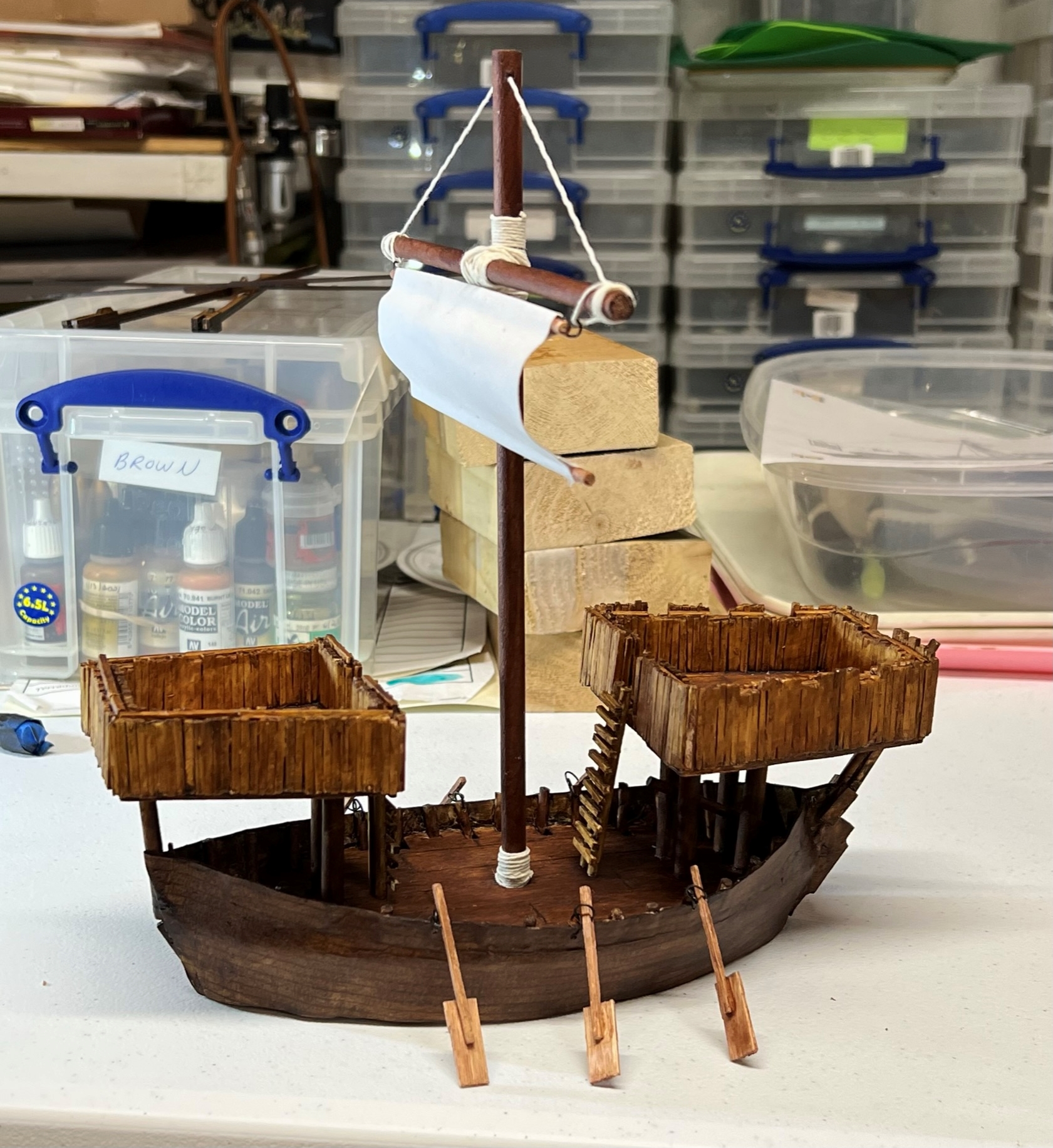 I was really thrilled at the response. What fun it was – an Aztec vs. Conquistadores naval game! It was total mayhem! How? Collisions, ramming of canoes, brigantines getting boarded, canoes getting sunk by arquebuses, ship cannons firing and wiping out whole canoe crews, Aztecs avenging their comrades by wiping out the same cannon crew, and the overall Aztec commander personally boarding a conquistador brigantine to make an assault that cost him his life and the game.